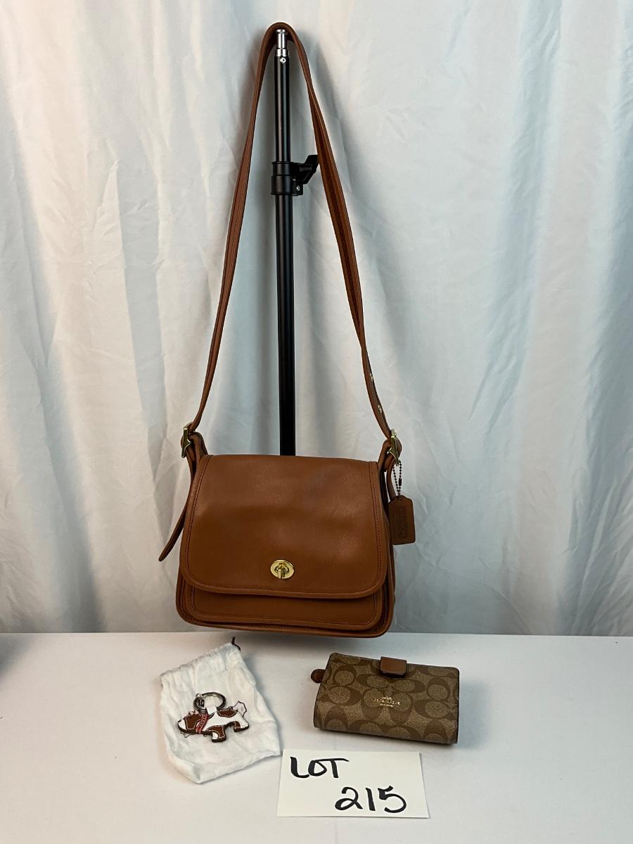 Lot E 215 Vintage Coach Ramblers Legacy Flap Shoulder Bag Bi-Fold Wallet and Dog Keychain