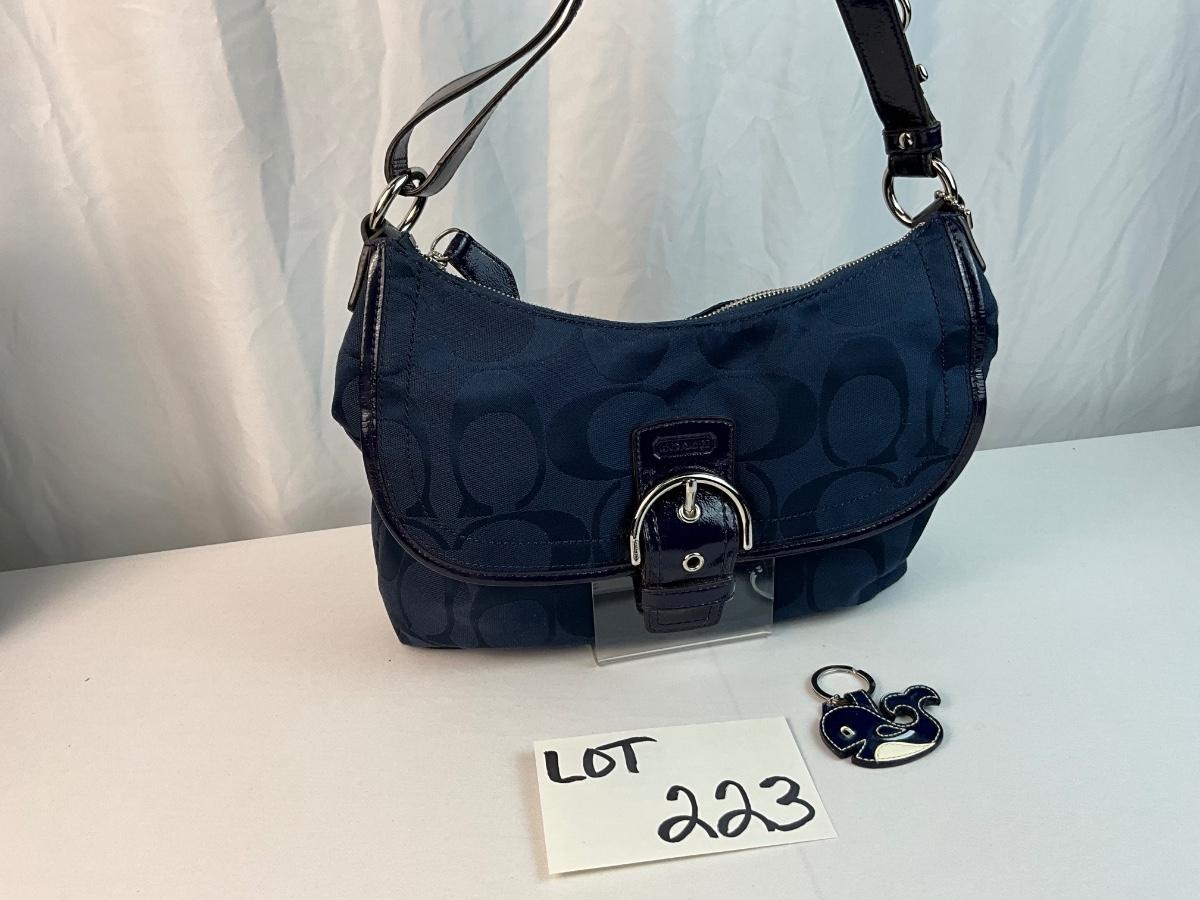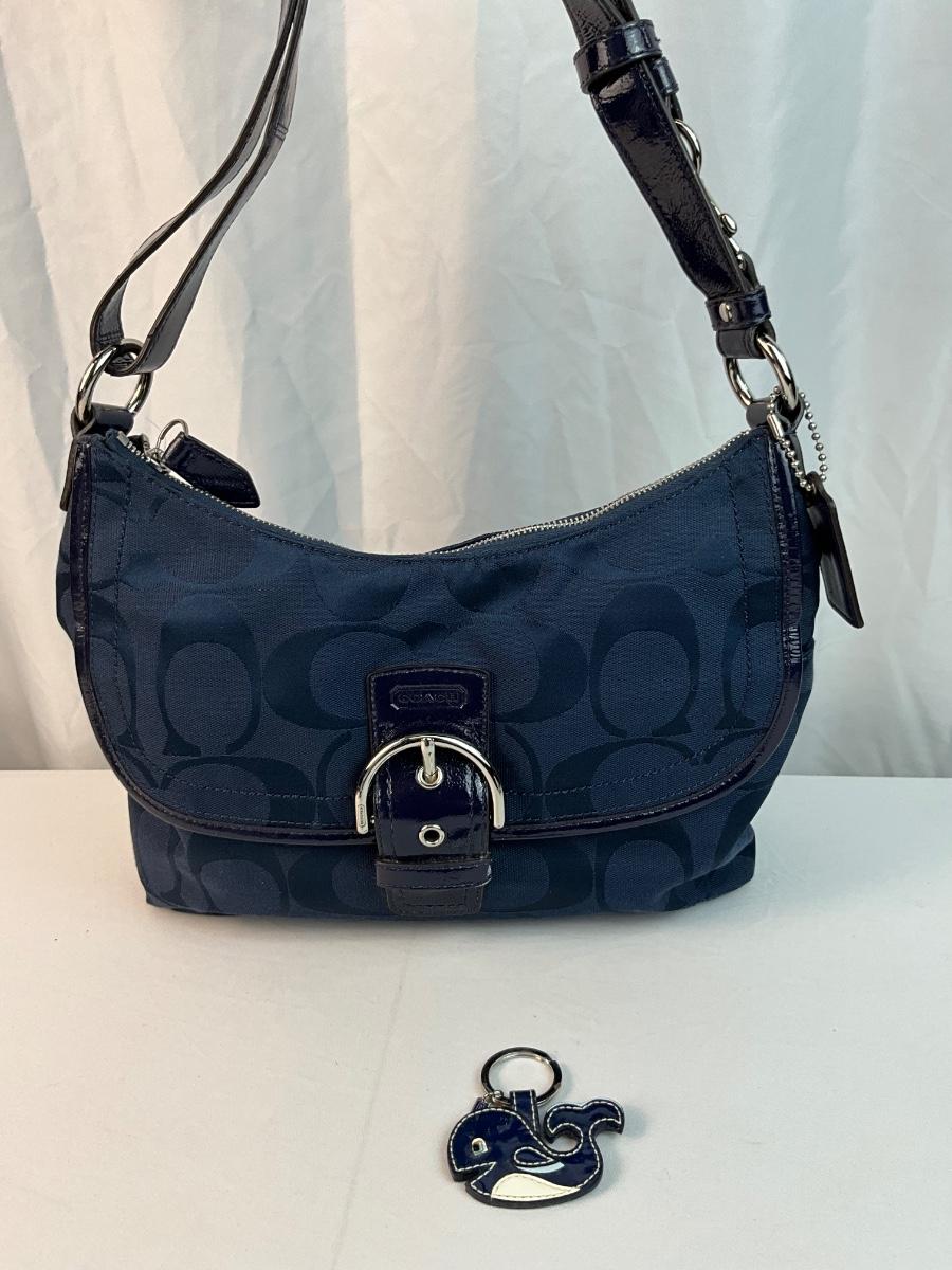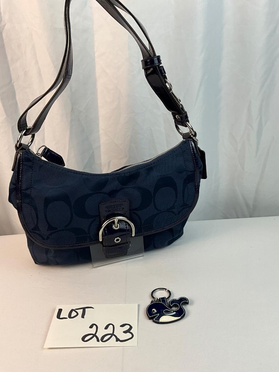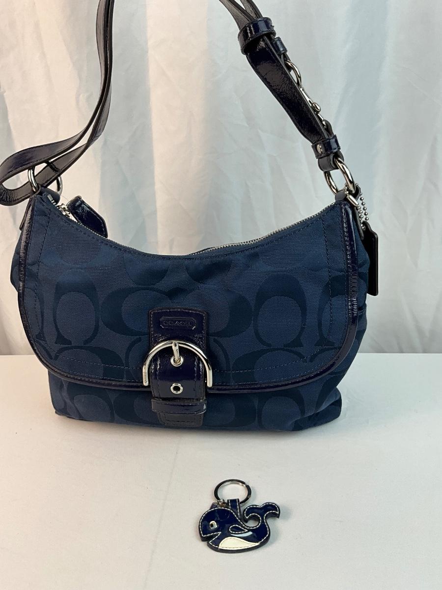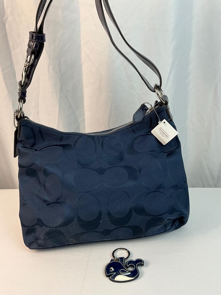 Lot E 223 NWT Coach Navy Signature Shoulder Bag and Whale Keychain