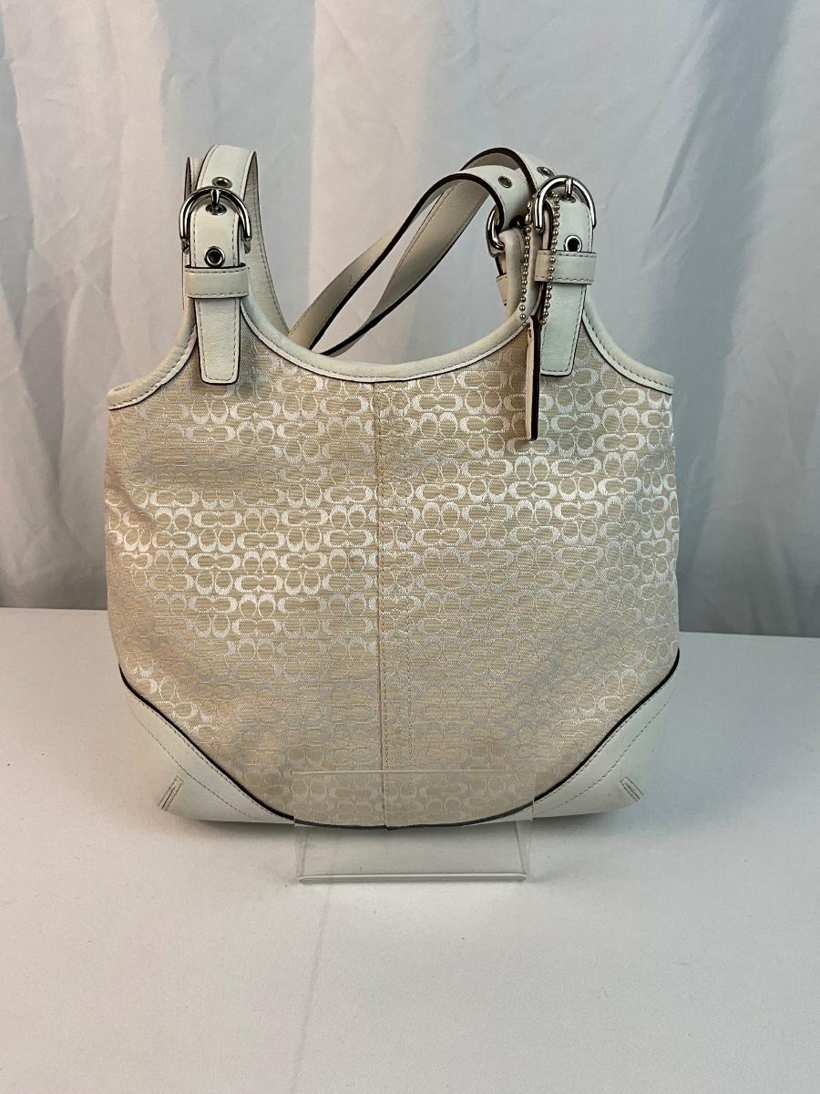 Vintage Coach signature white handbag. Has some signs of wear (see photos).
