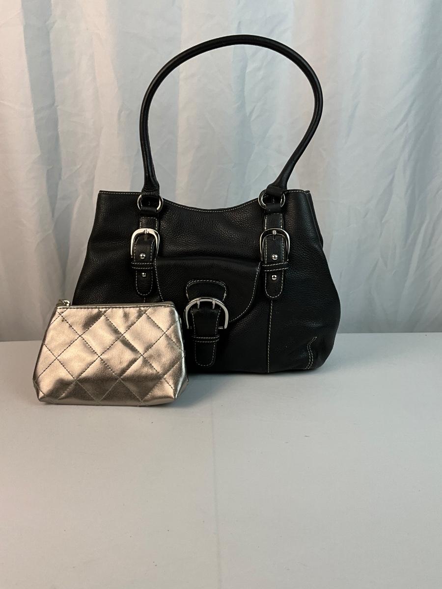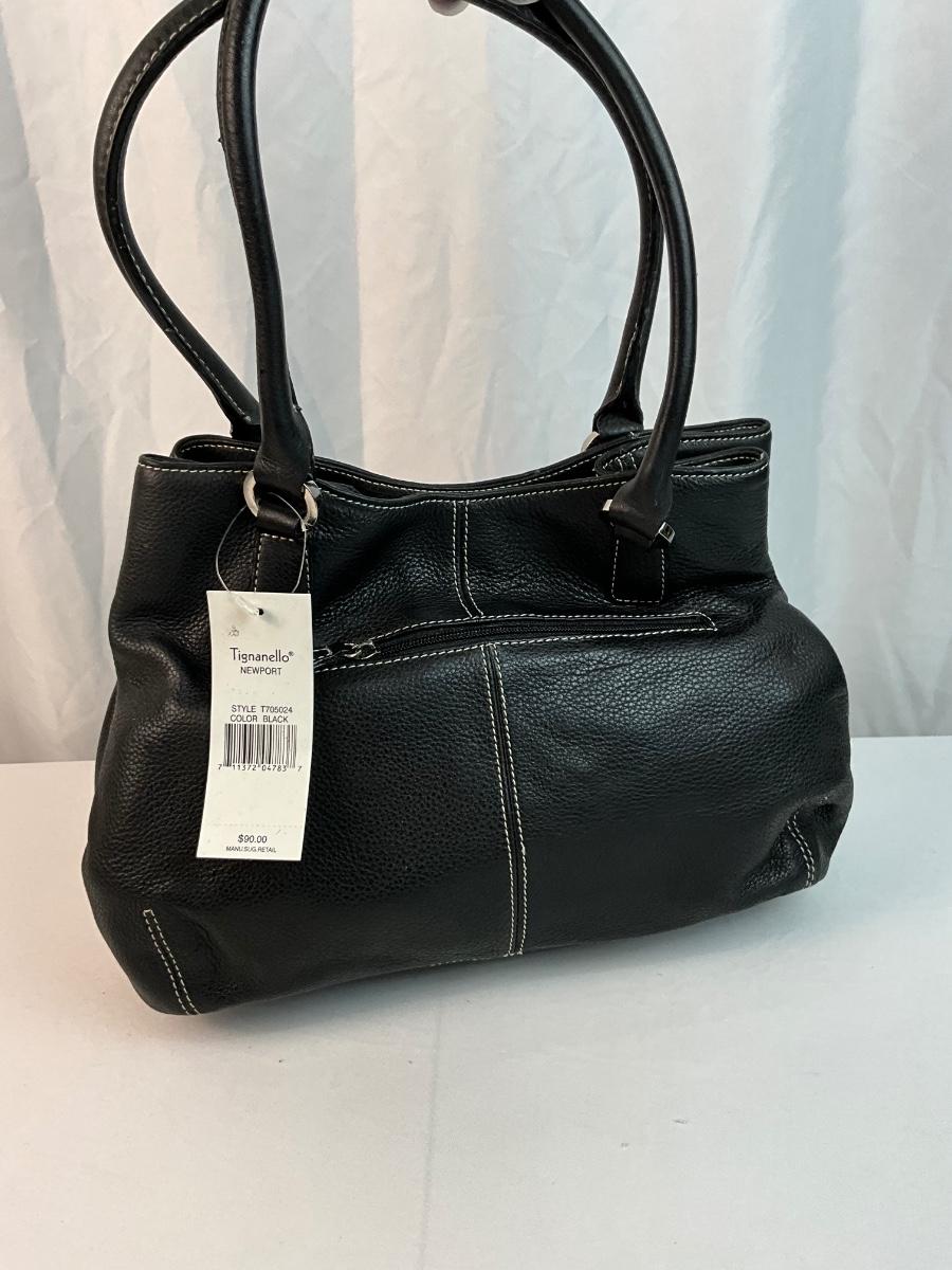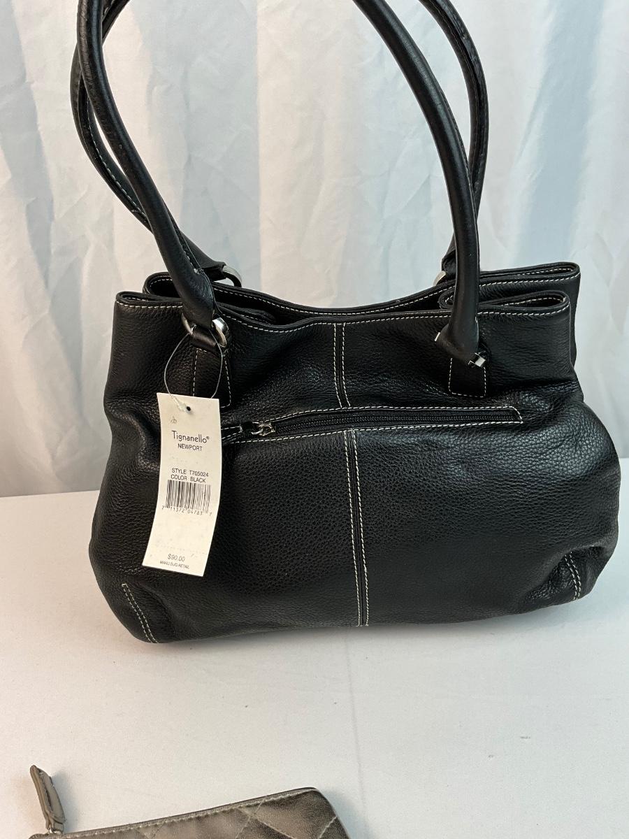 New With Tags Tignanello black leather shoulder bag and cosmetics bag.