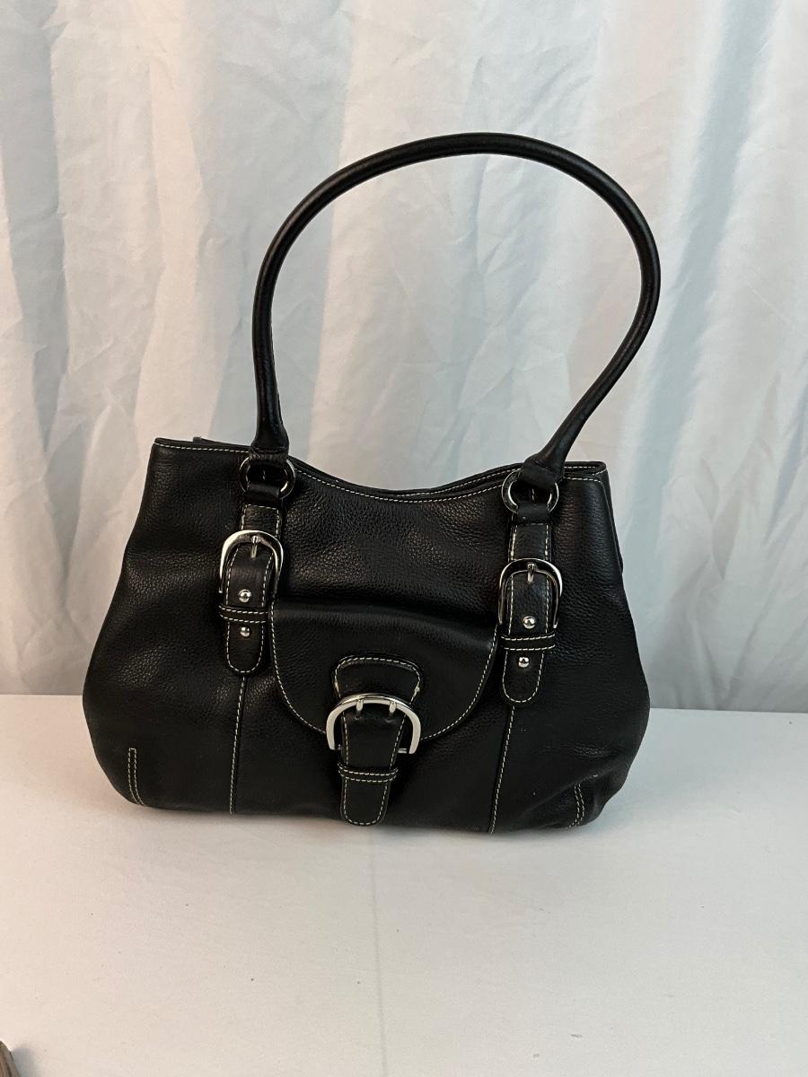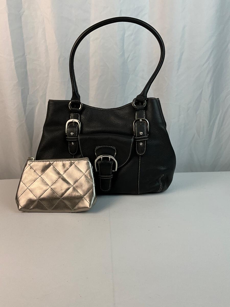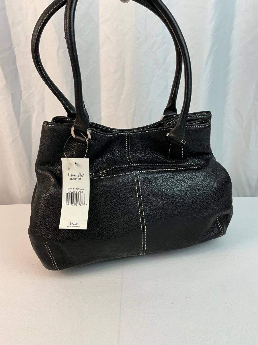 New With Tags Tignanello black leather shoulder bag and cosmetics bag.