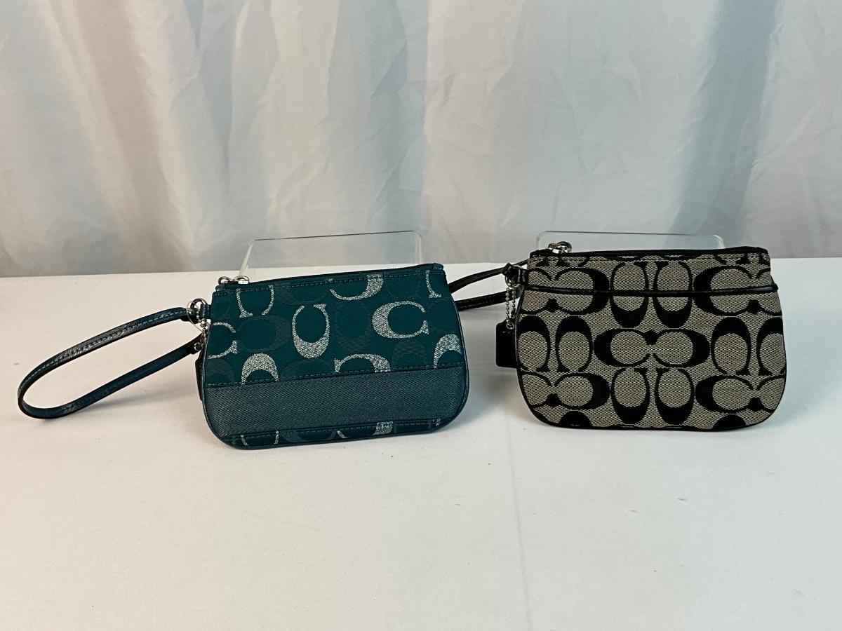 New With Tags Teal and Silver Coach wristlet. Gently used Coach signature wristlet black and tan.