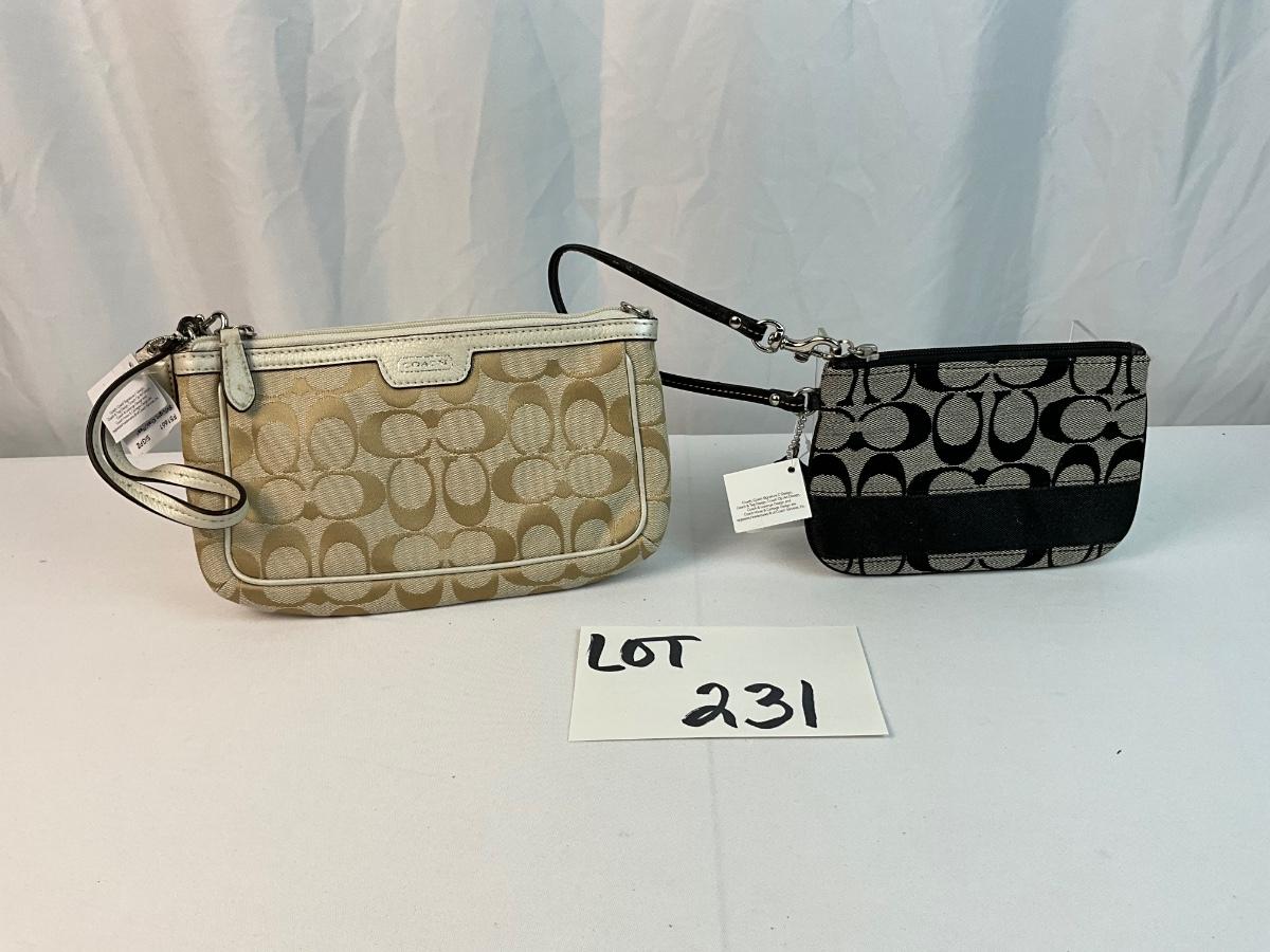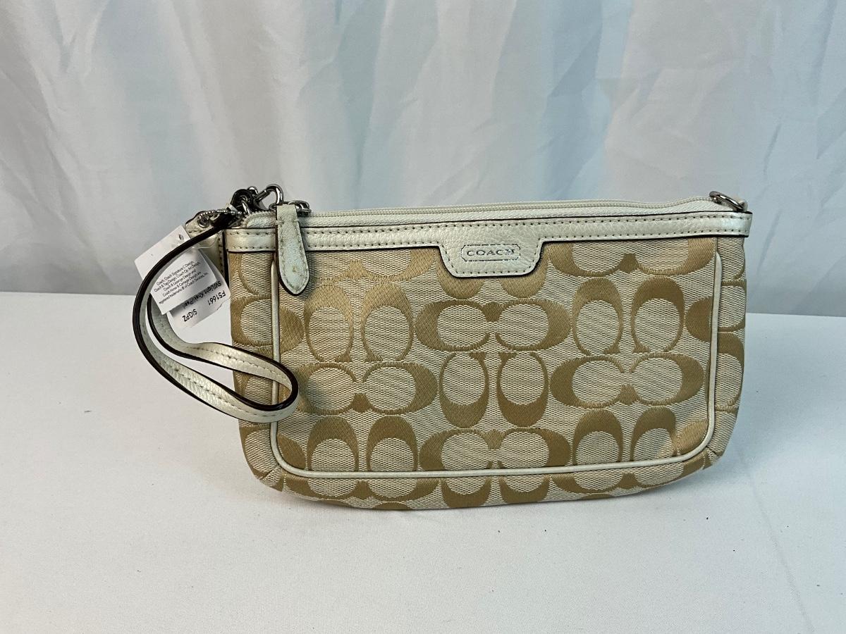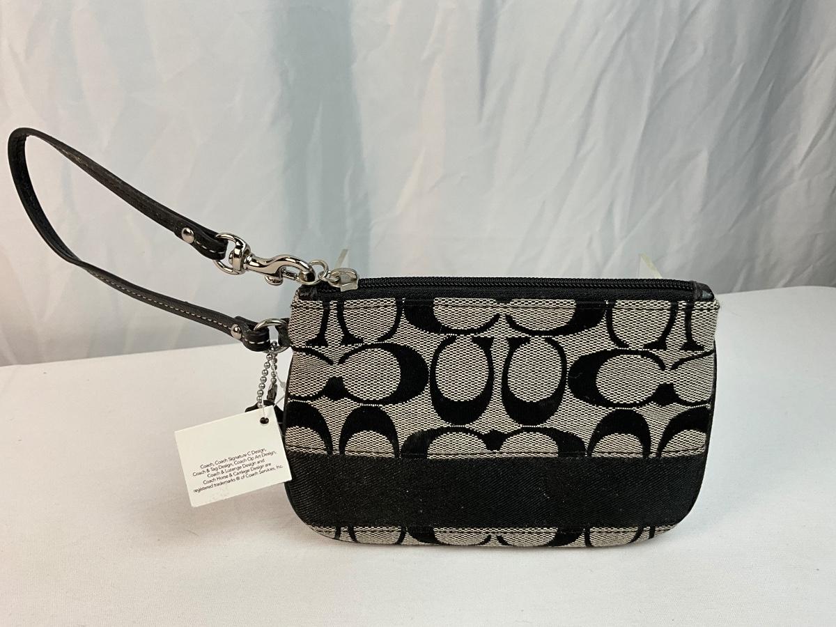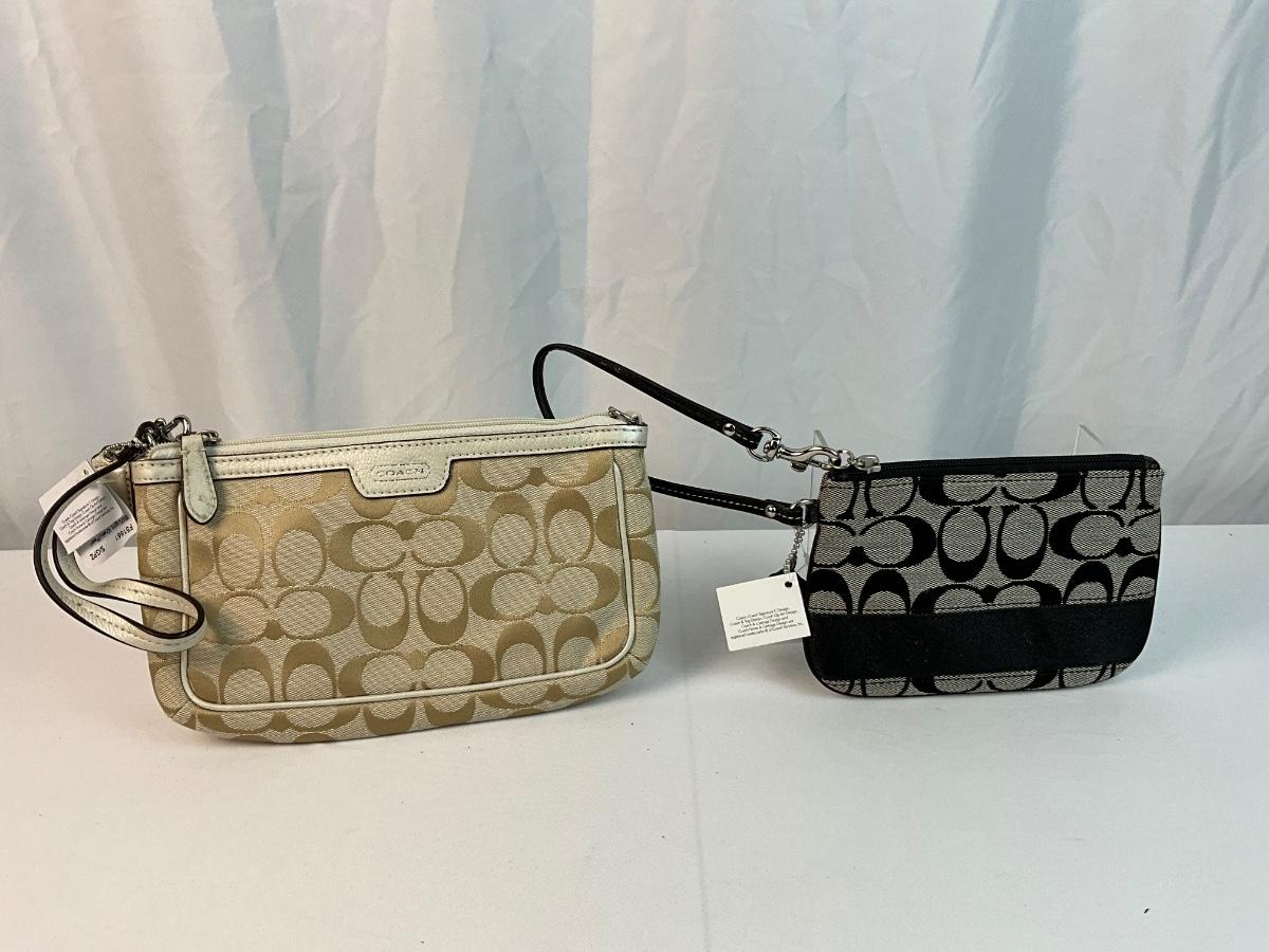 New With Tags. Gold and Tan signature Coach wristlet. New With Tags. Black signature Coach wristlet.