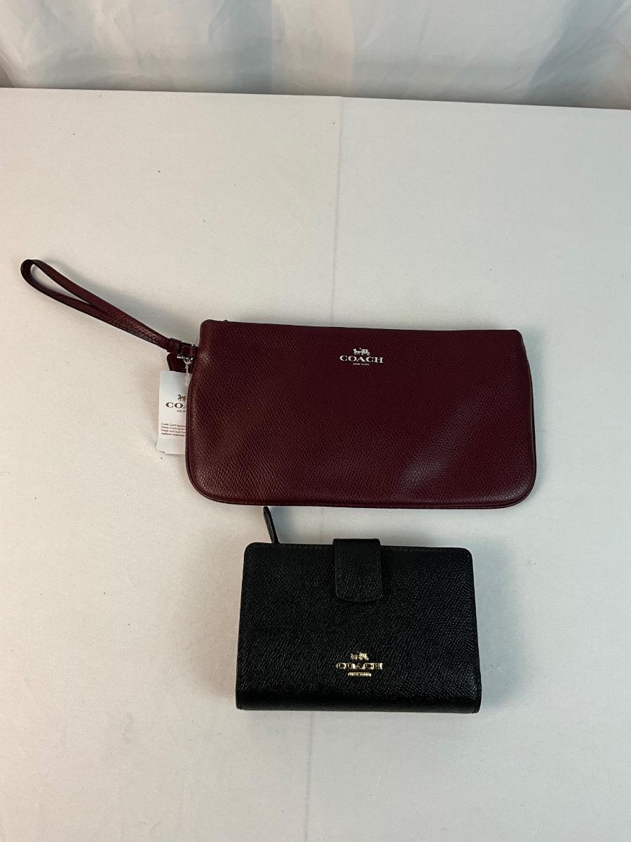 New With Tags Burgundy Coach wristlet. Gently used Coach bifold wallet.