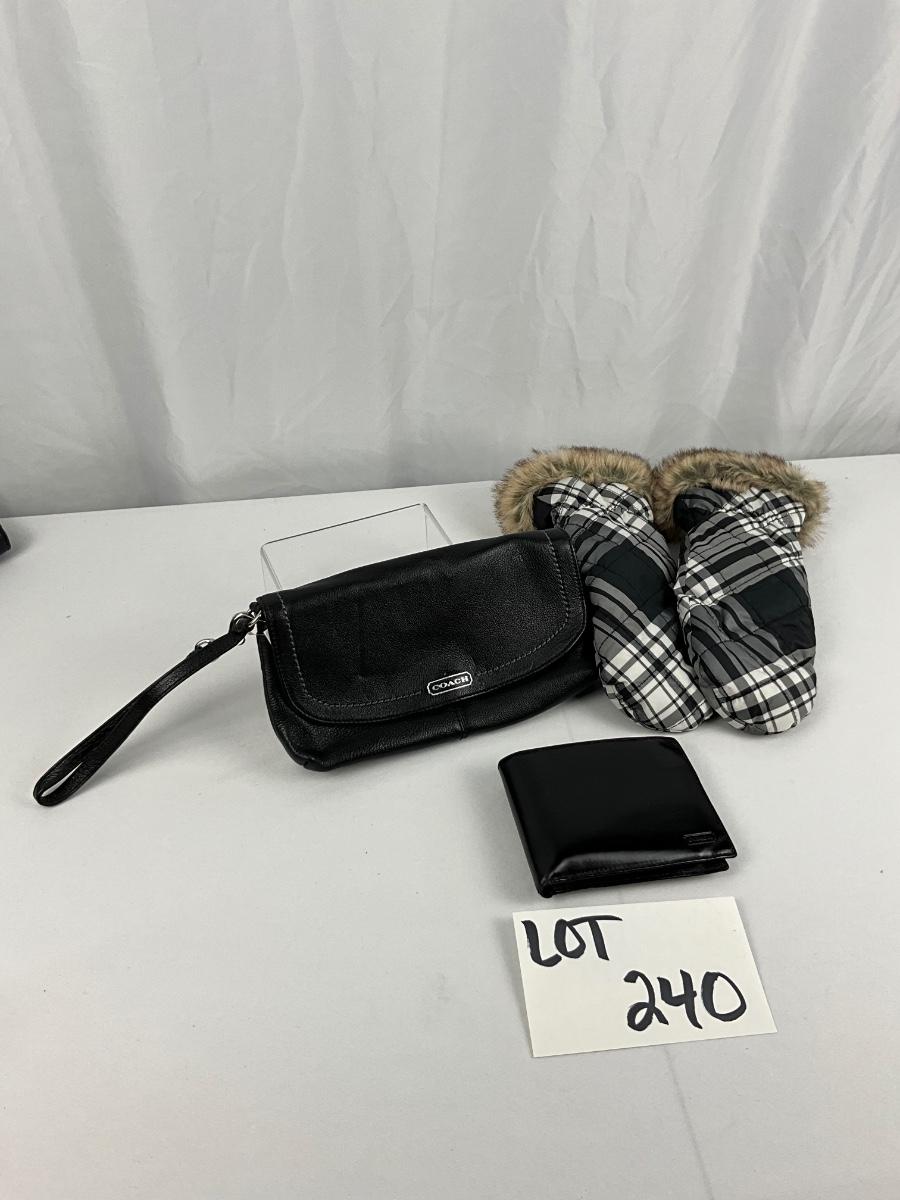 Lot E 240 NWT Coach Leather Clutch, Wallet and Pair of MIttens