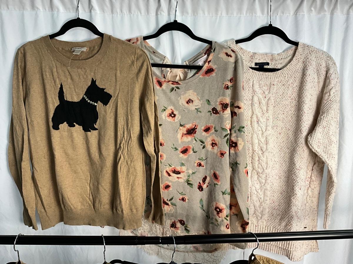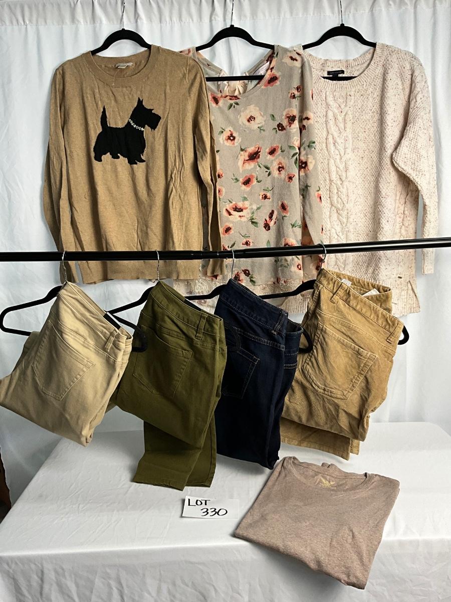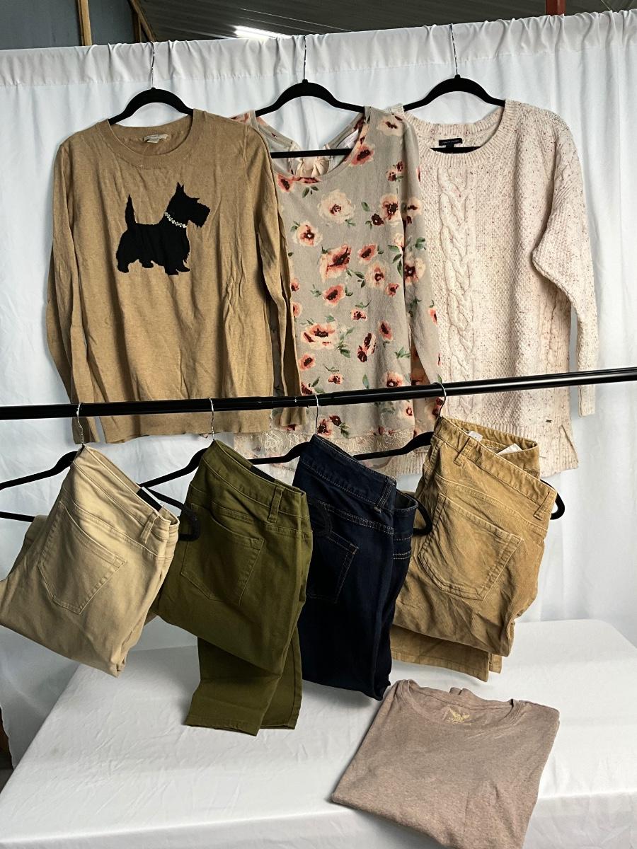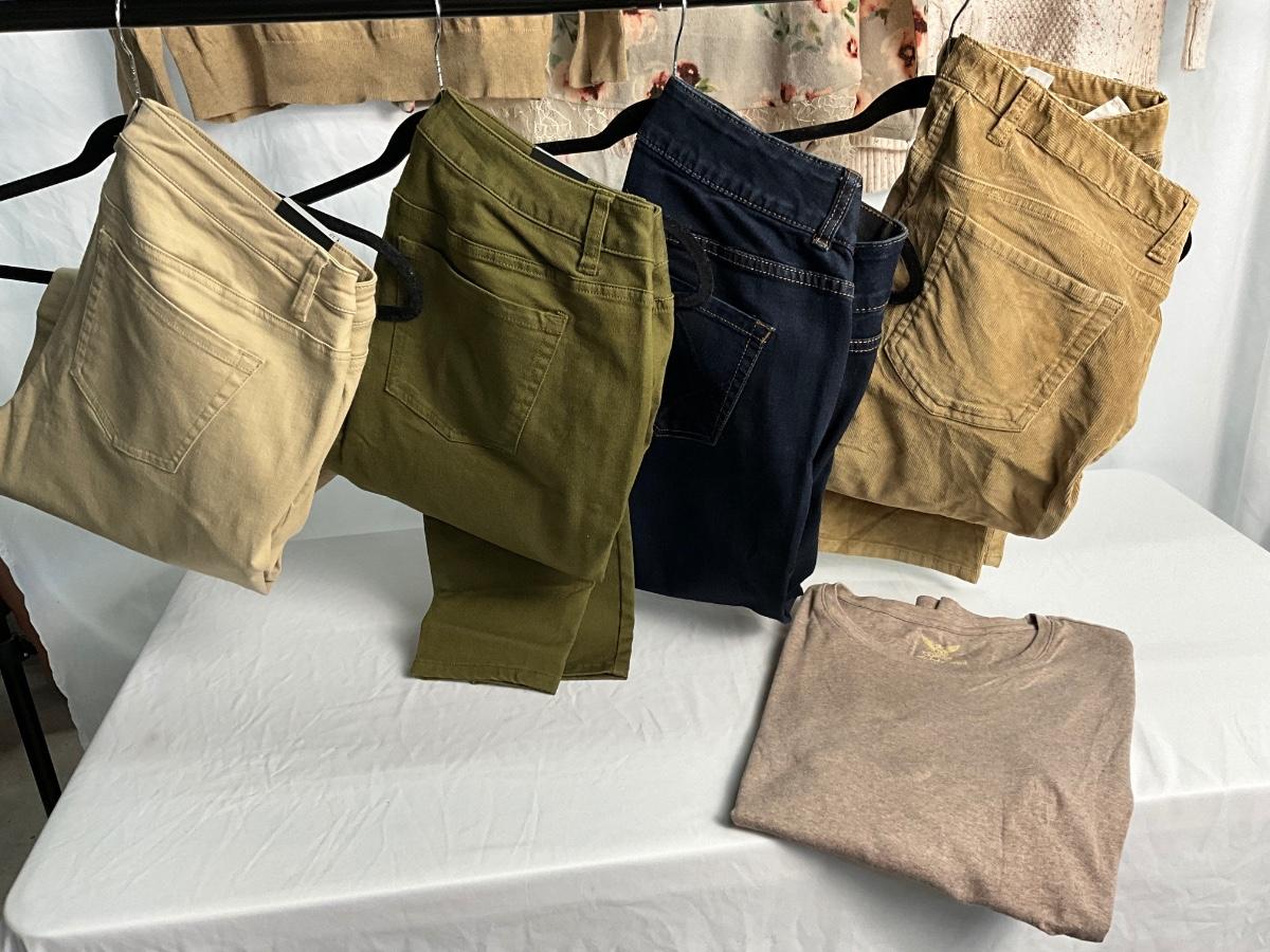 There are 8 items in this lot, most are new with tags and size XL. Brands included but not limited to are Tommy Hilfiger, Lane Bryant, Lauren Conrad, Loft and more. All pants are a size 18.