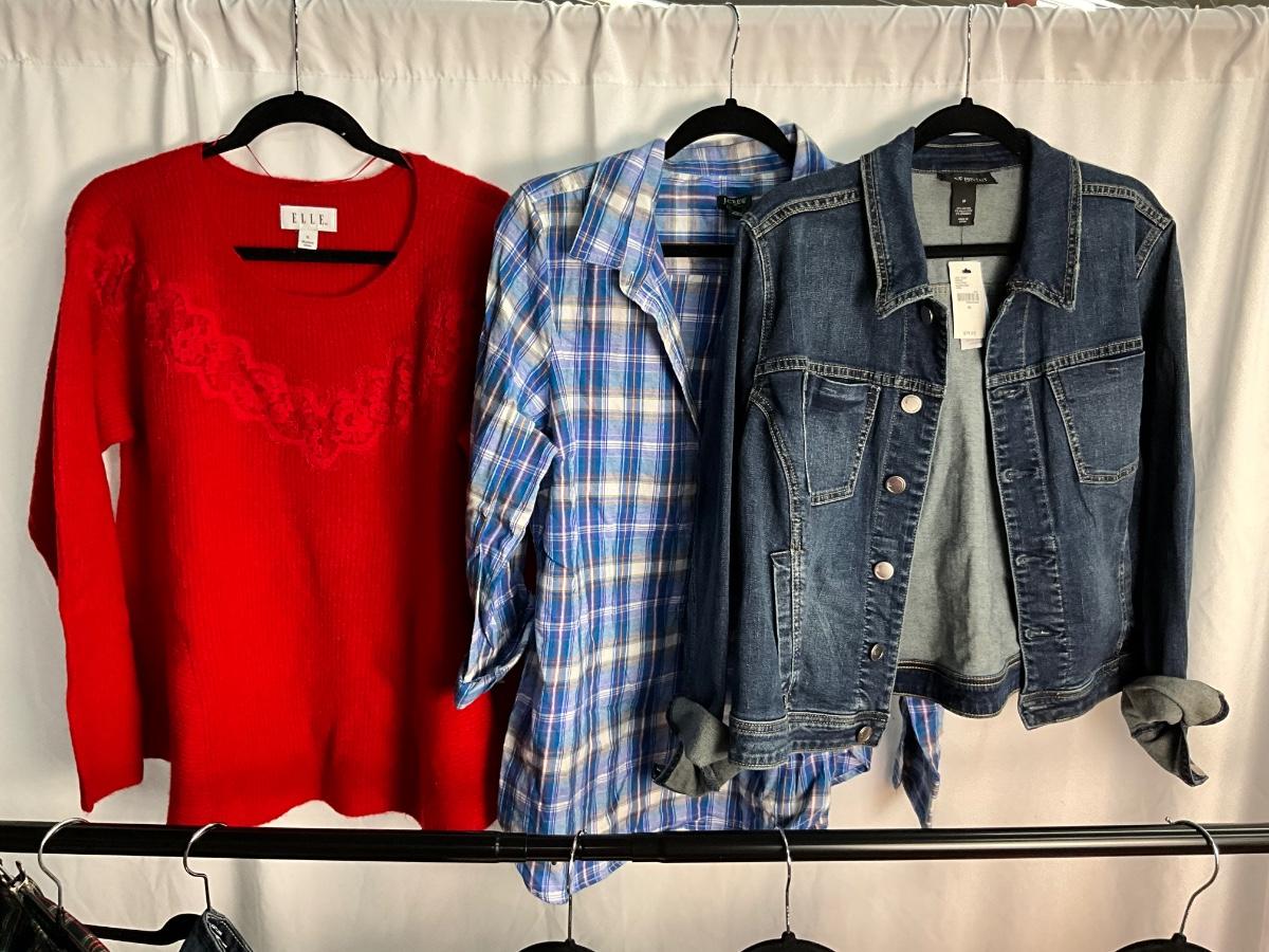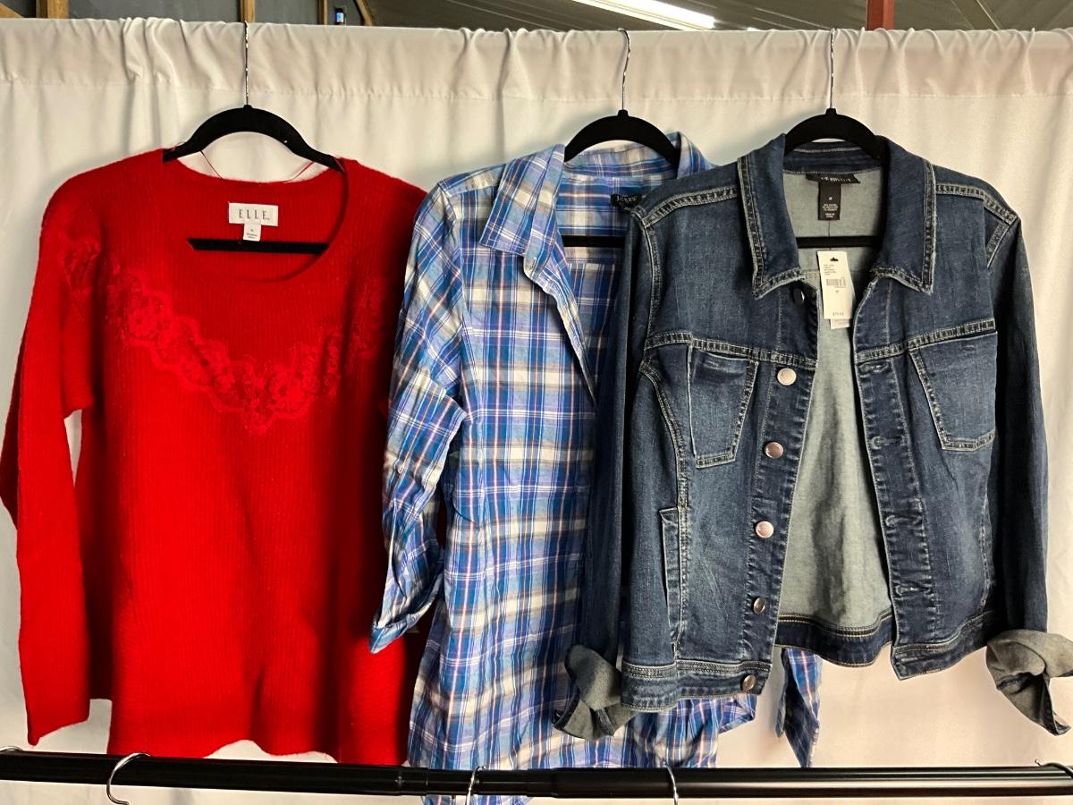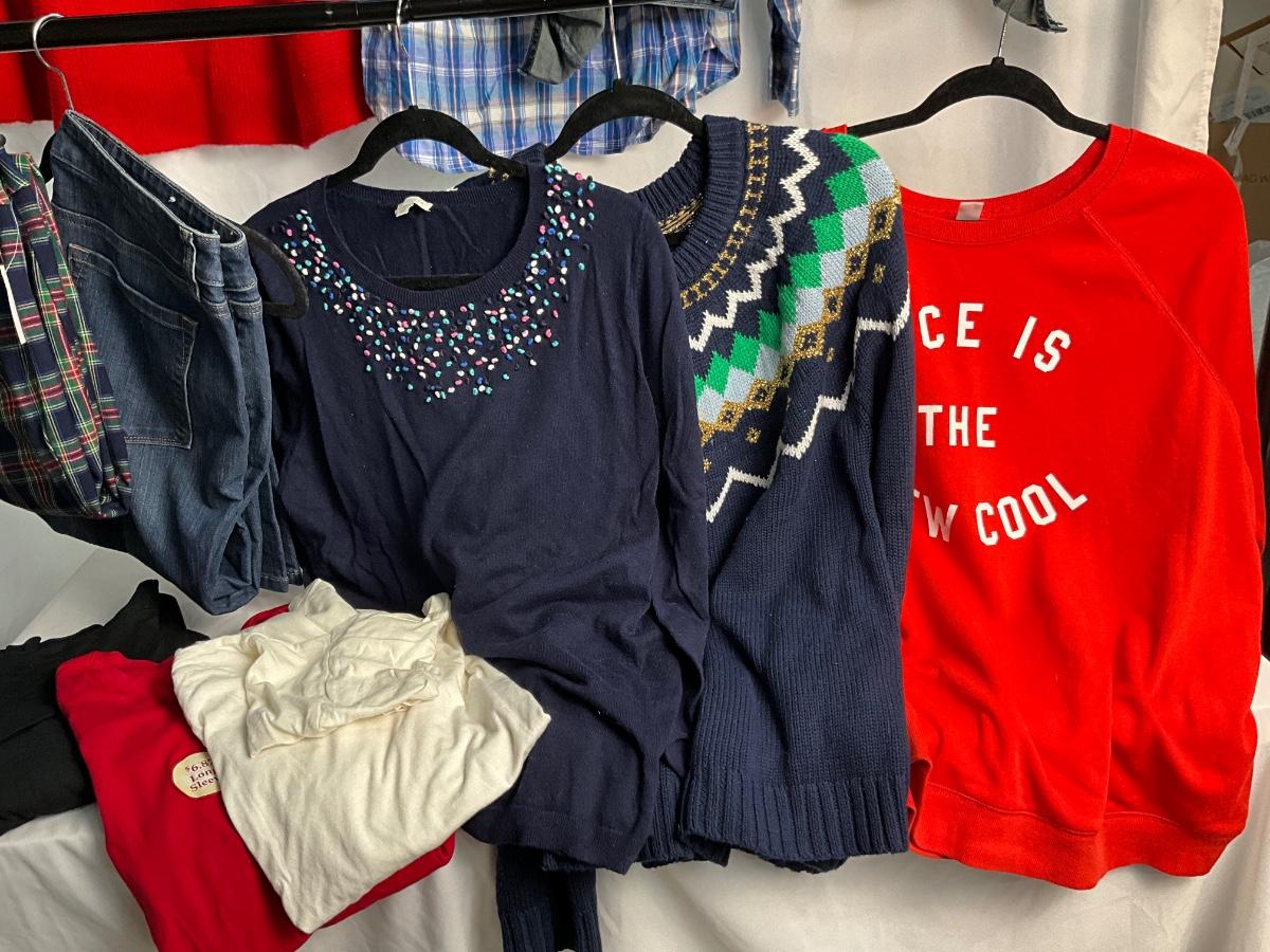 There are 11 items in this lot and several are new with tags. The tops in the lot are XL and the pants are 16/18. Brands included in the lot are Lane Bryant, J. Crew, Talbots, Loft and more.