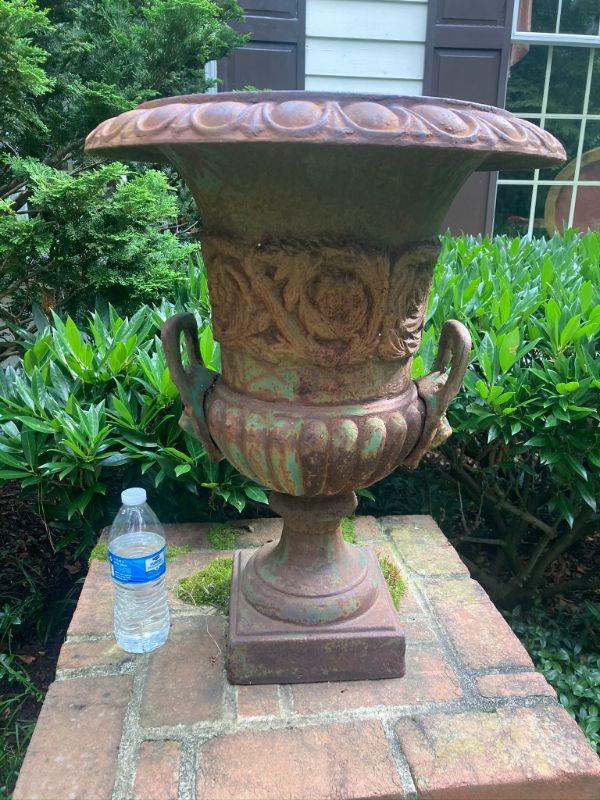 See pictures for condition. Winning bidder gets the pair of matching urns pictured.