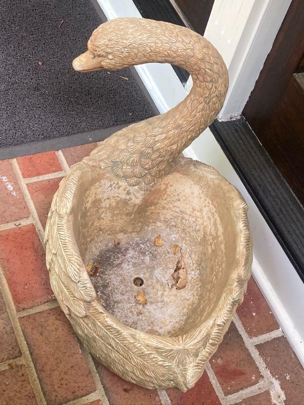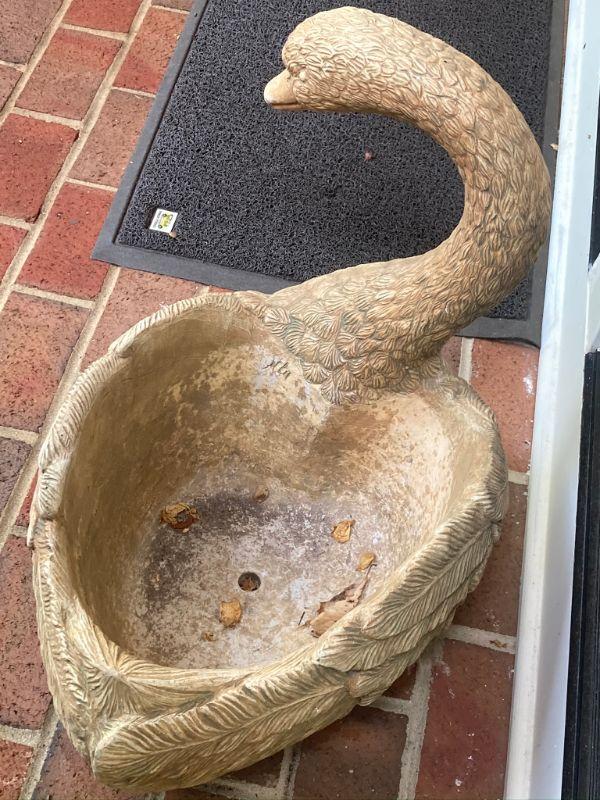 See pictures for condition, nice cement swan planter.