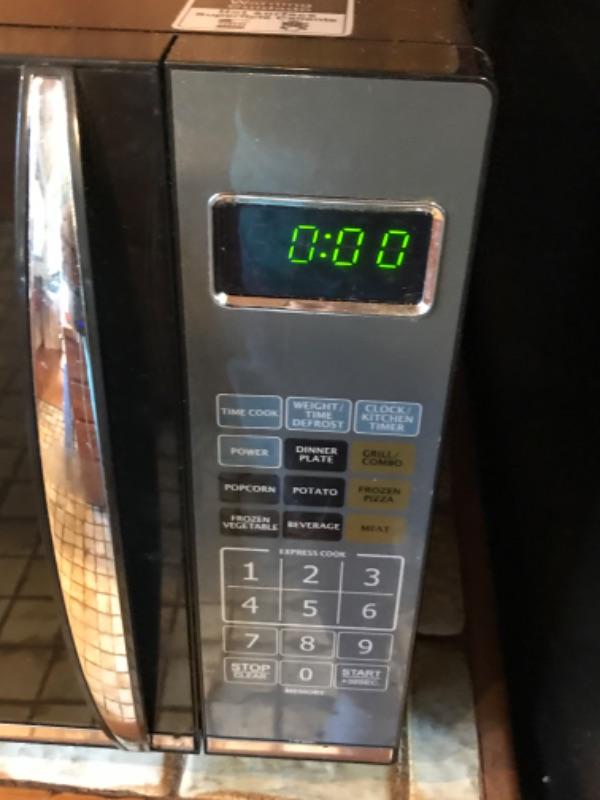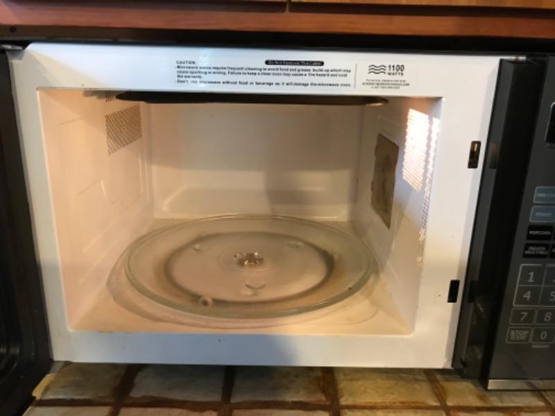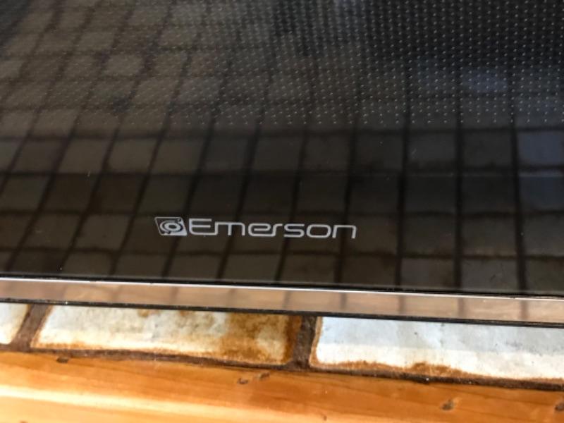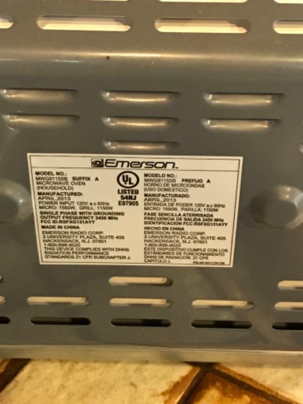 Emerson Microwave Oven Model No: MWG9115SB 1.2 cubic ft. 1100 watts. Measures 20-1/2” long 13” tall and 16” deep. Like new condition. Tested and works great