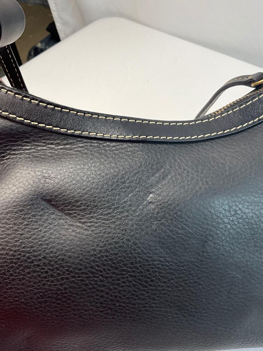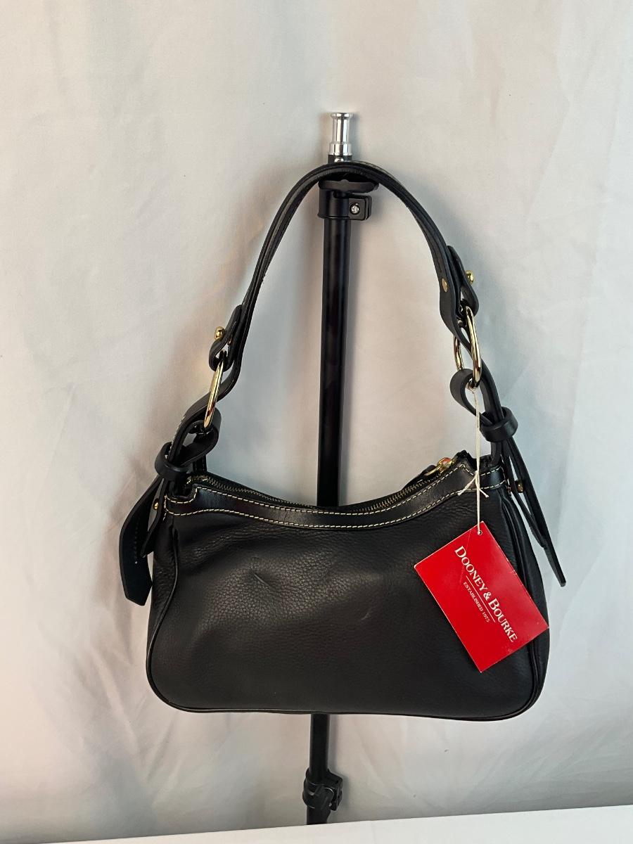 New With Tags Vintage Dooney & Bourke Black leather Baguette Shoulder bag with double front pockets. Has a press mark on back (please see photos).