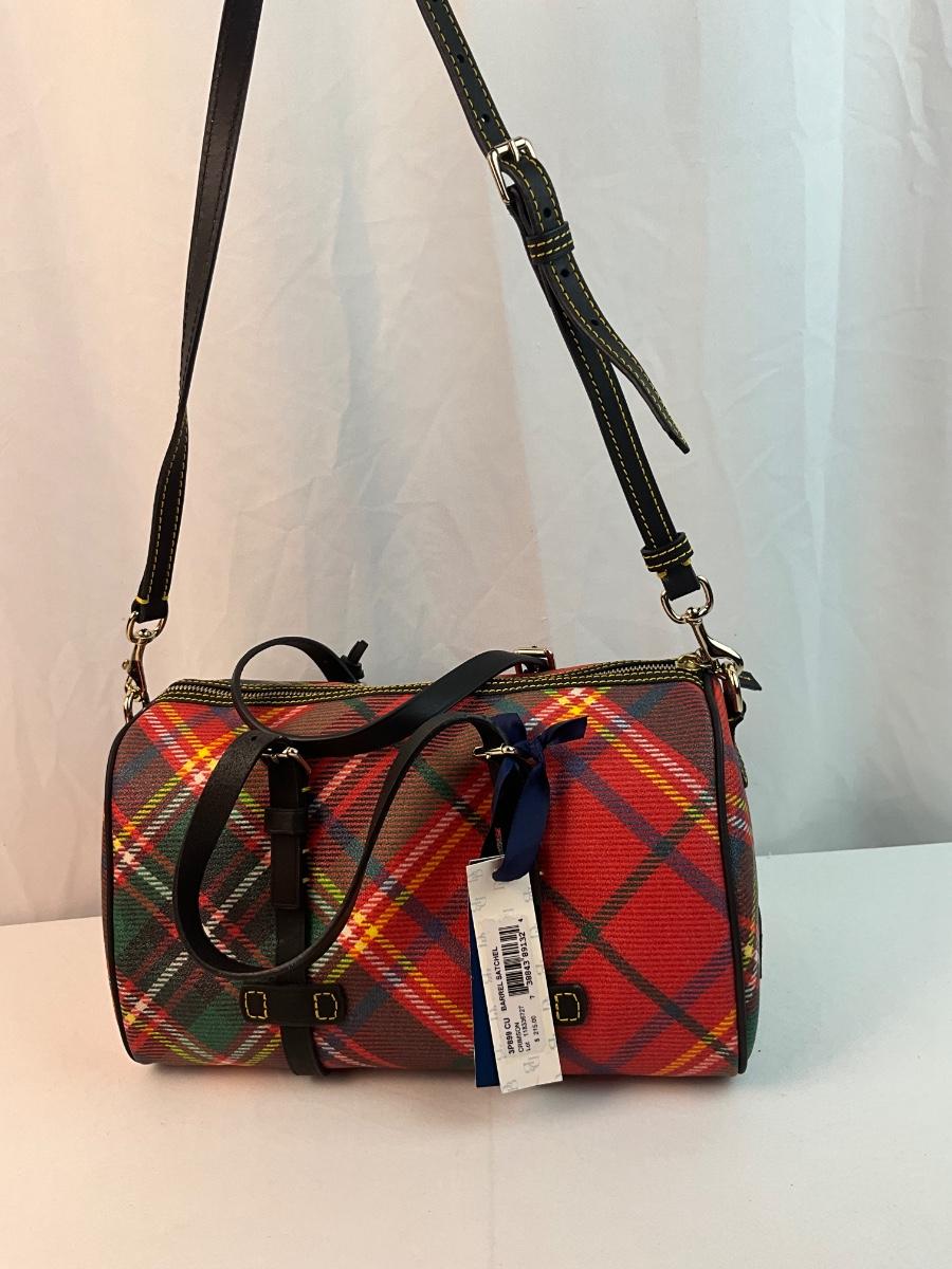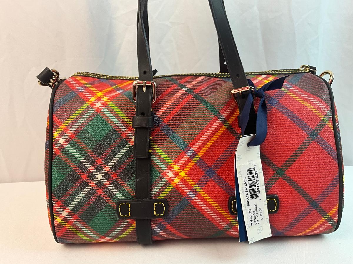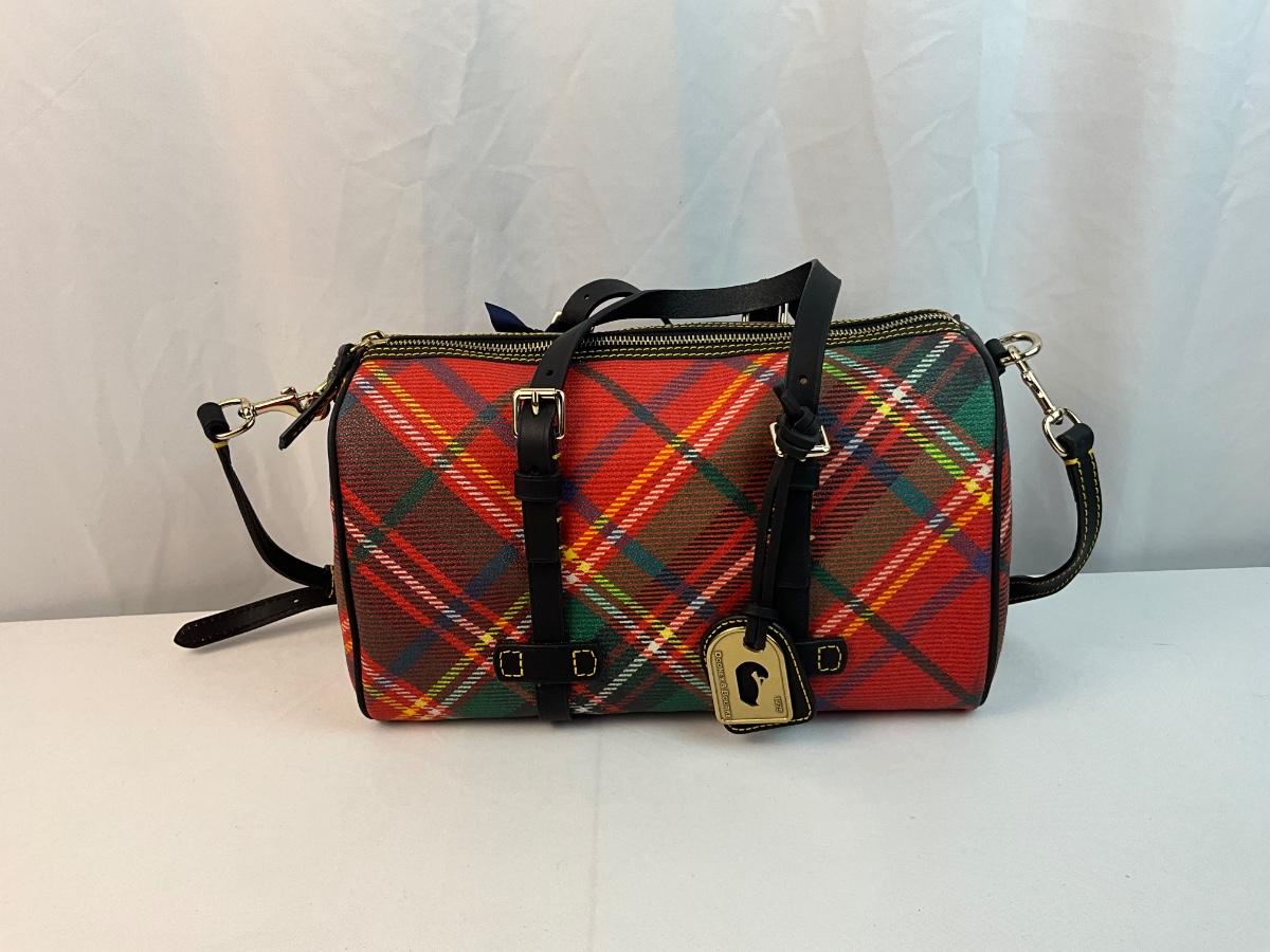 Lot F 295 NWT Dooney & Bourke Black Tartan Barrel Handbag