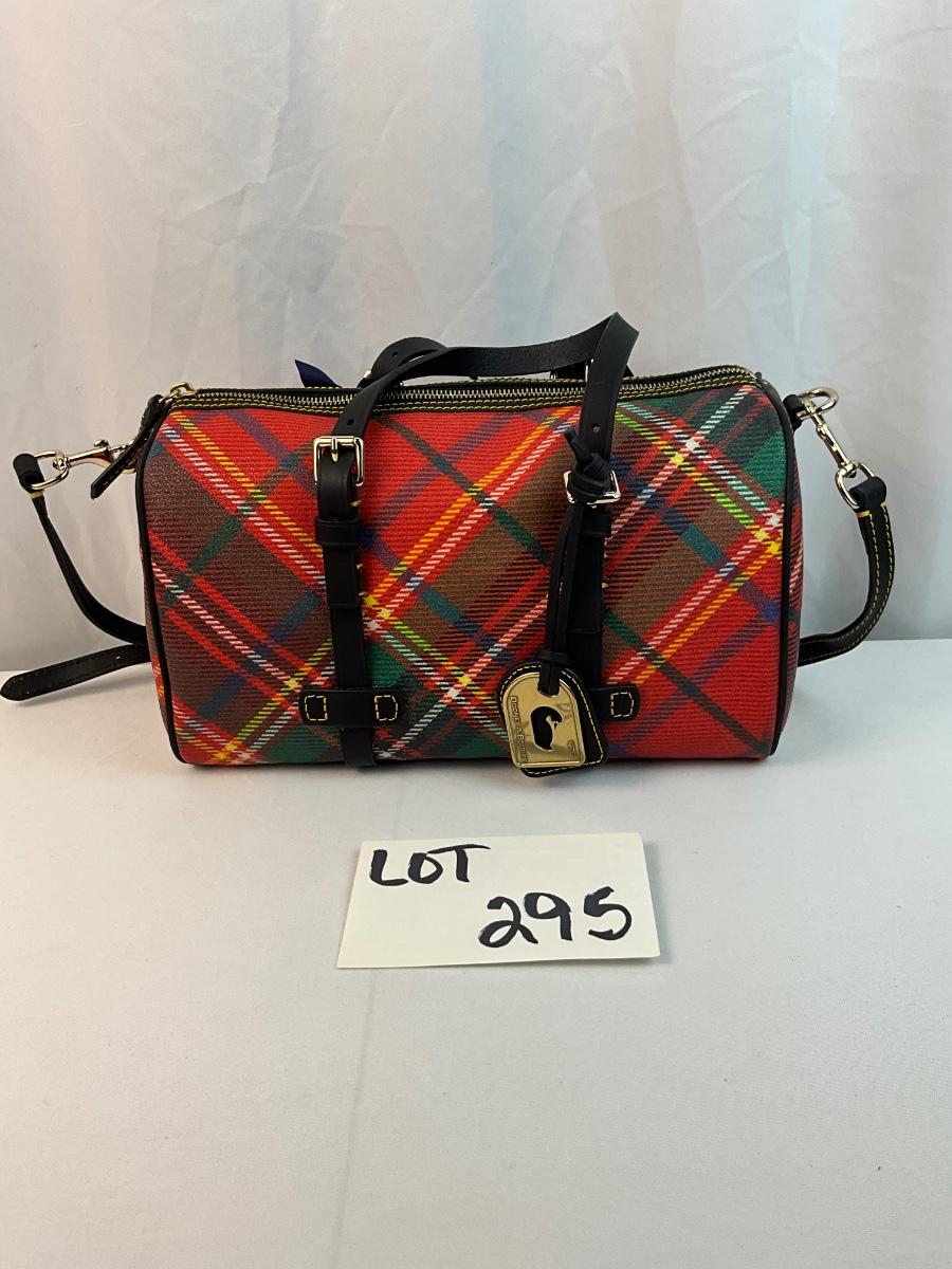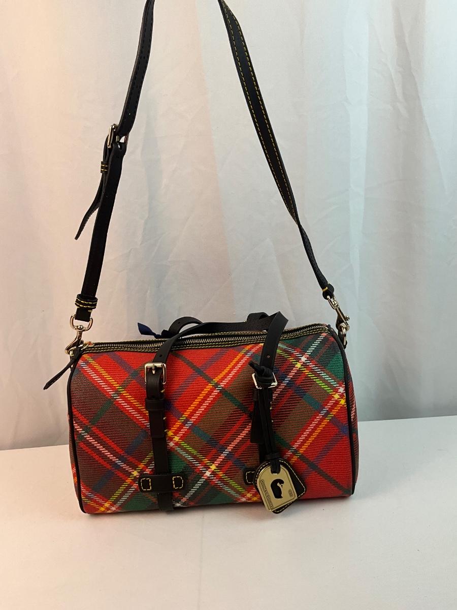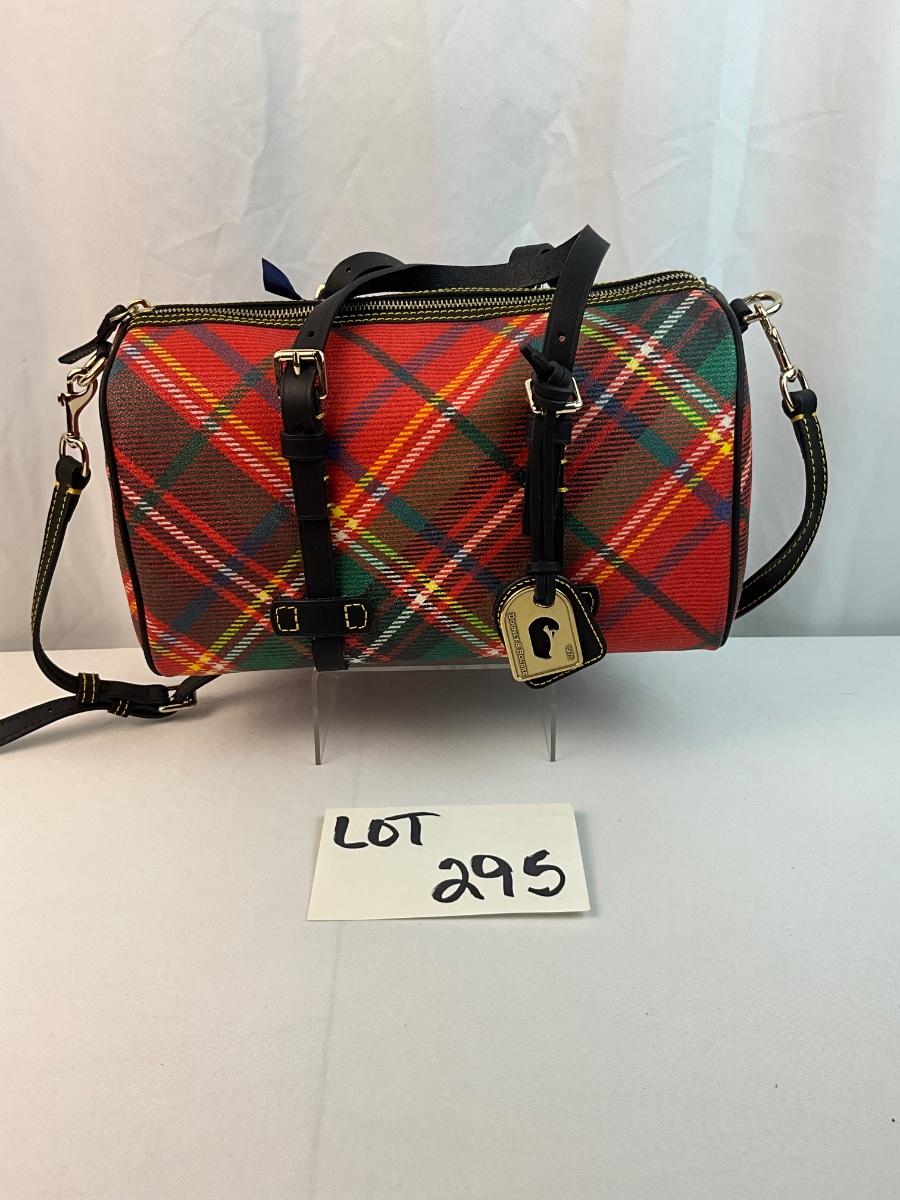 Lot F 295 NWT Dooney & Bourke Black Tartan Barrel Handbag