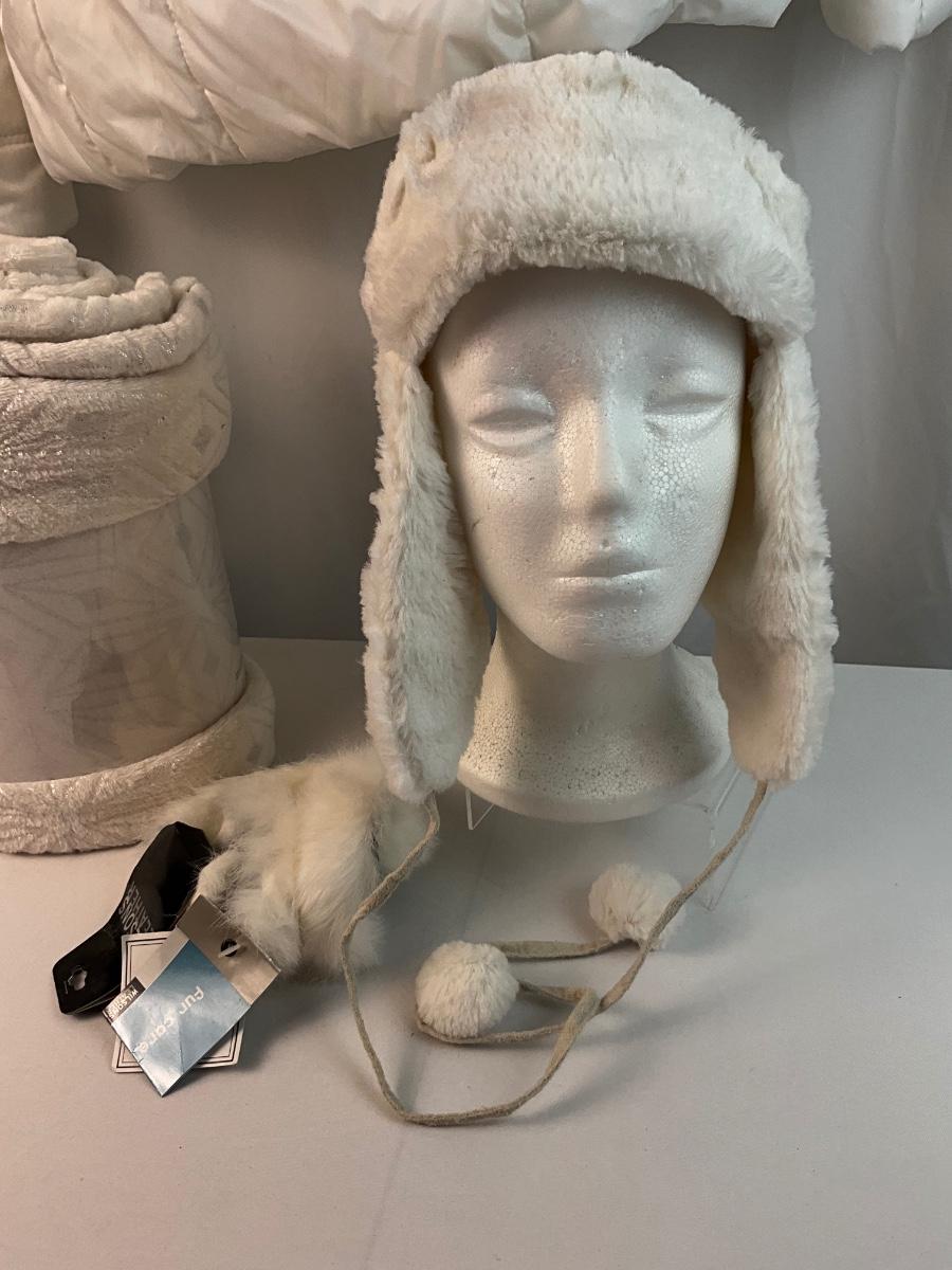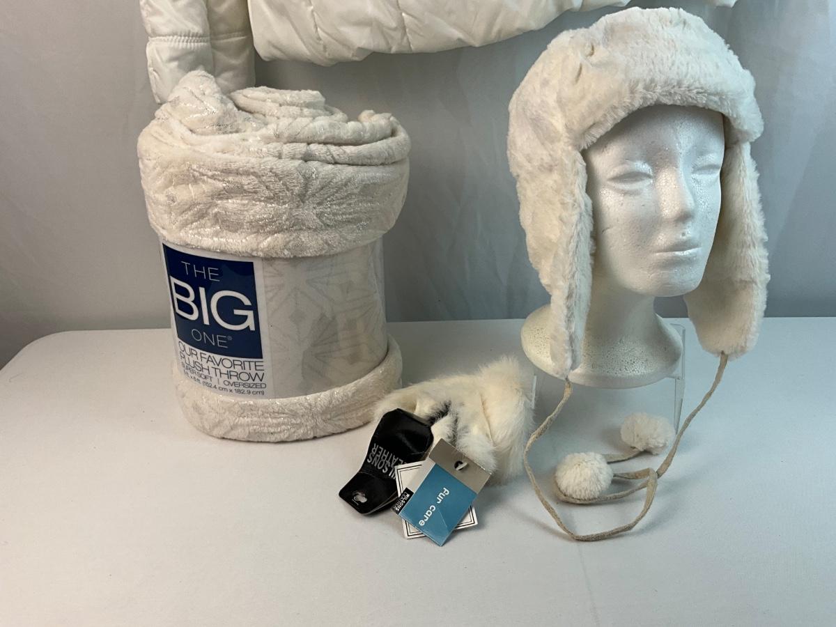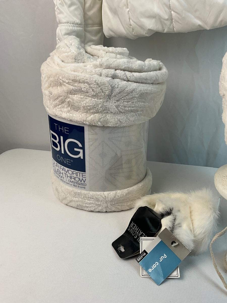 Lot F 299 Madison Ladies Winter Coat Hat Earmuffs Plush Throw Blanket
