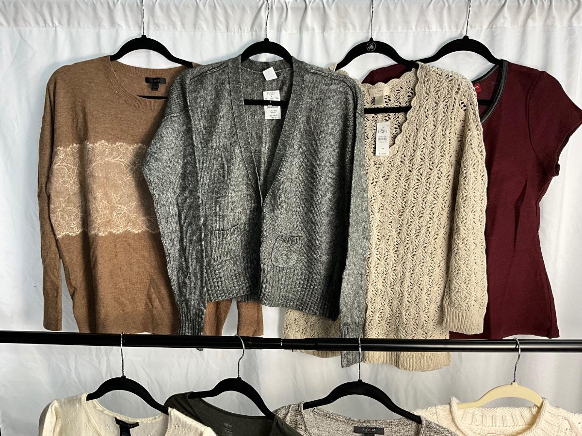 Brands such as The Limited, J.Crew, Mossino, Style & Co., Loft, Merona and more. Many items in this lot are new with tags.