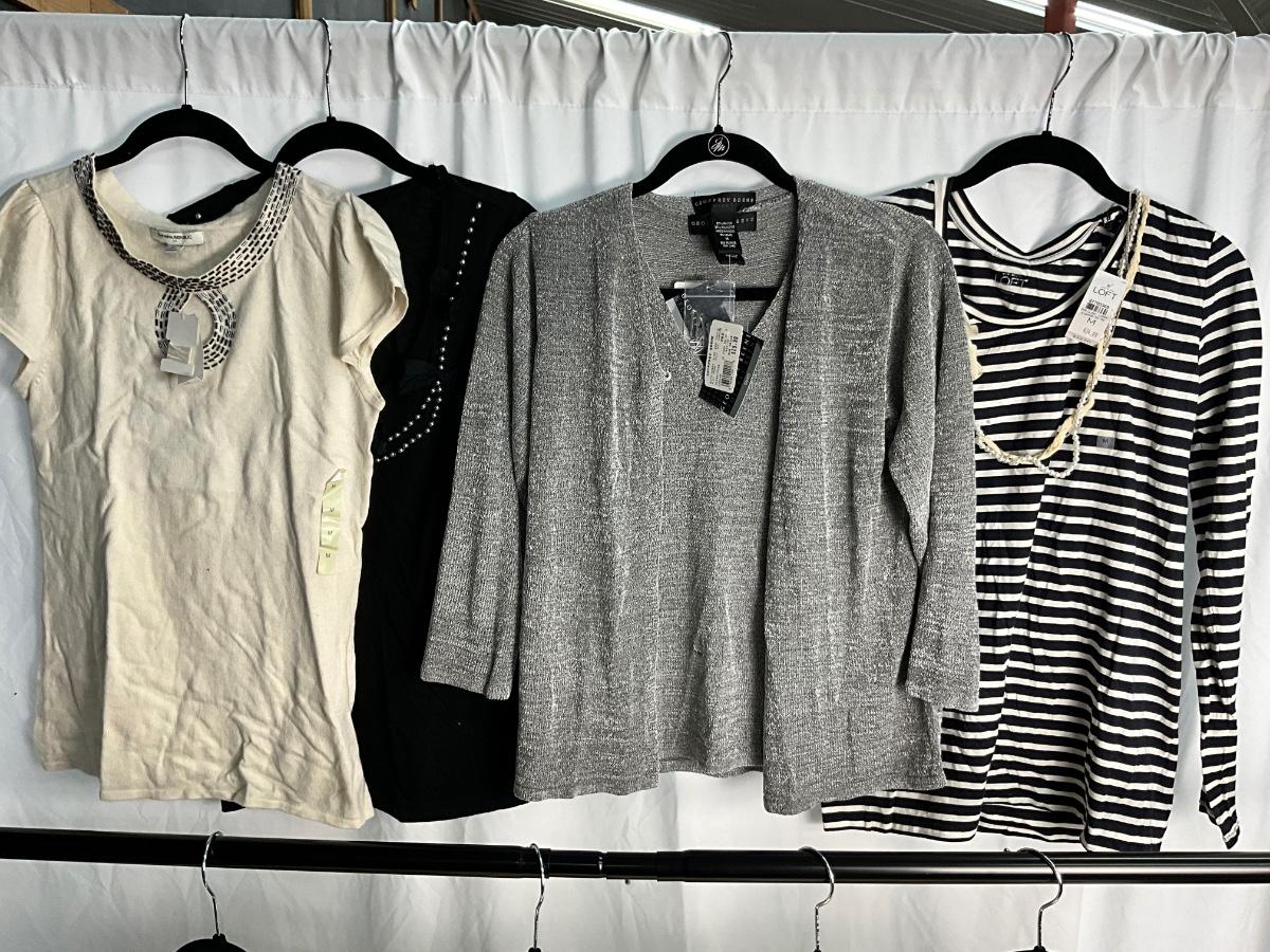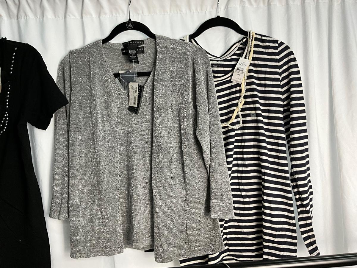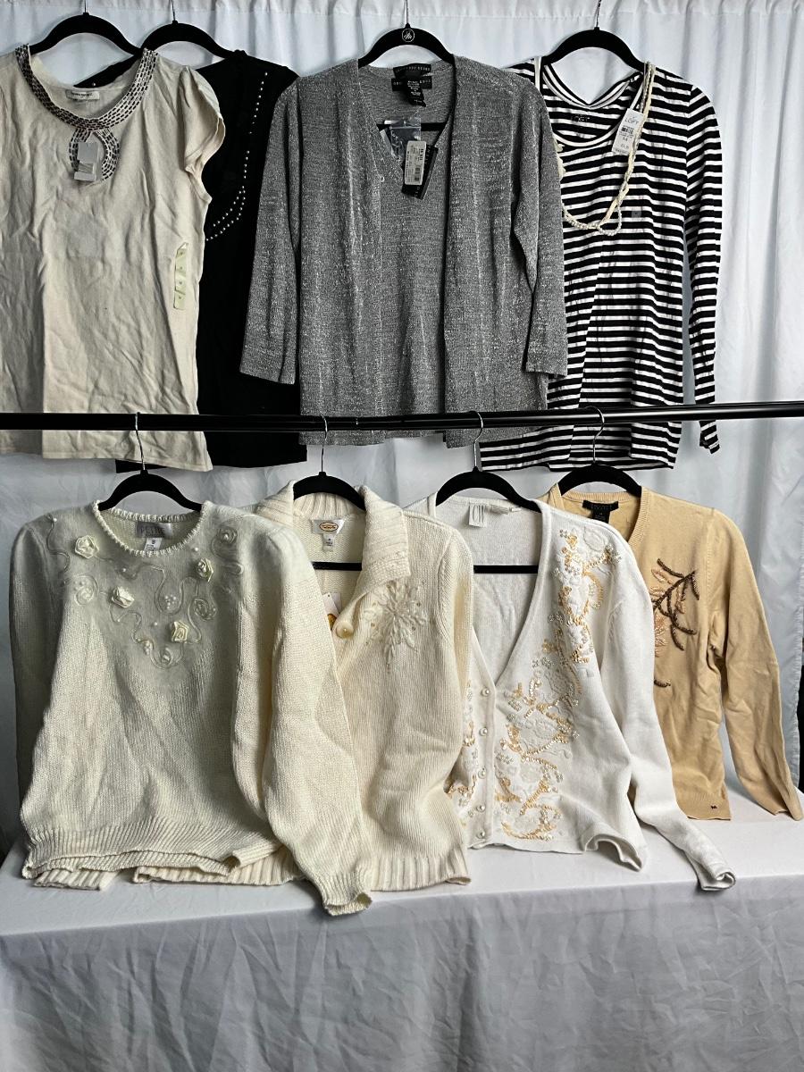 The lot contains 9 items, new with tags or like new condition. Size medium. Brands included are:
