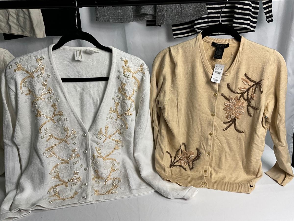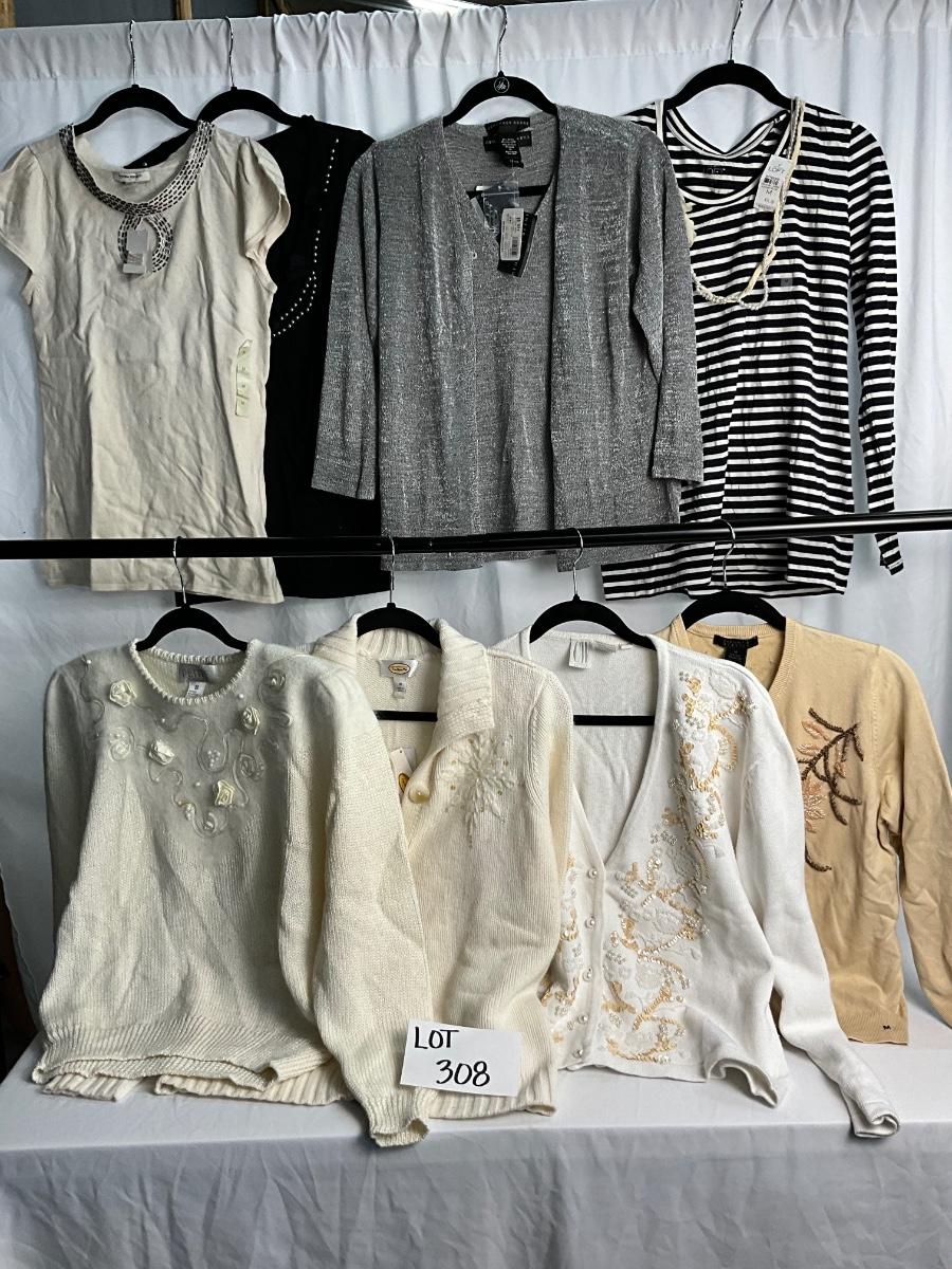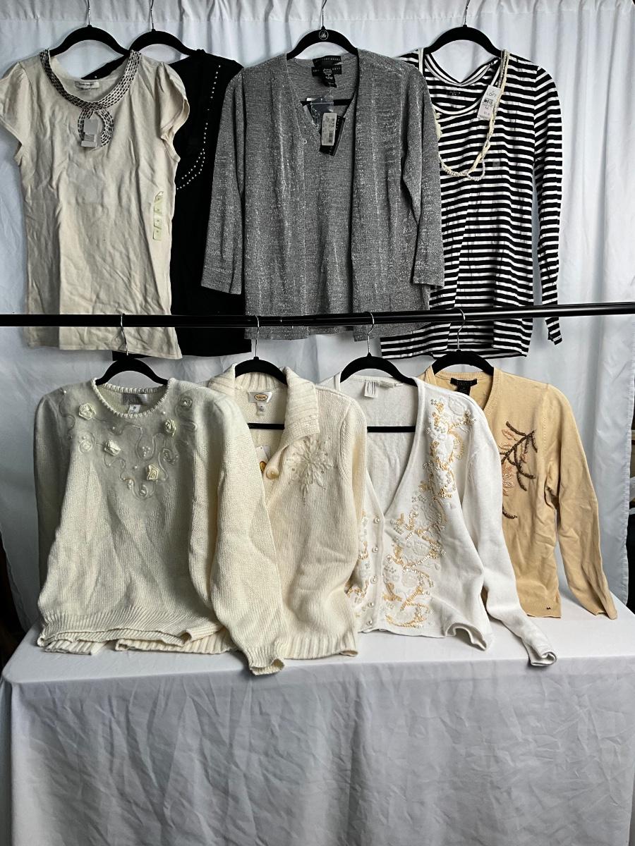 The lot contains 9 items, new with tags or like new condition. Size medium. Brands included are: