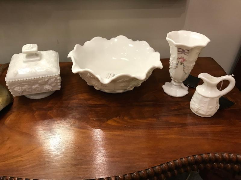 Lot 94-Lot f 4 Westmoreland Milk Glass Grape Pattern Pieces
