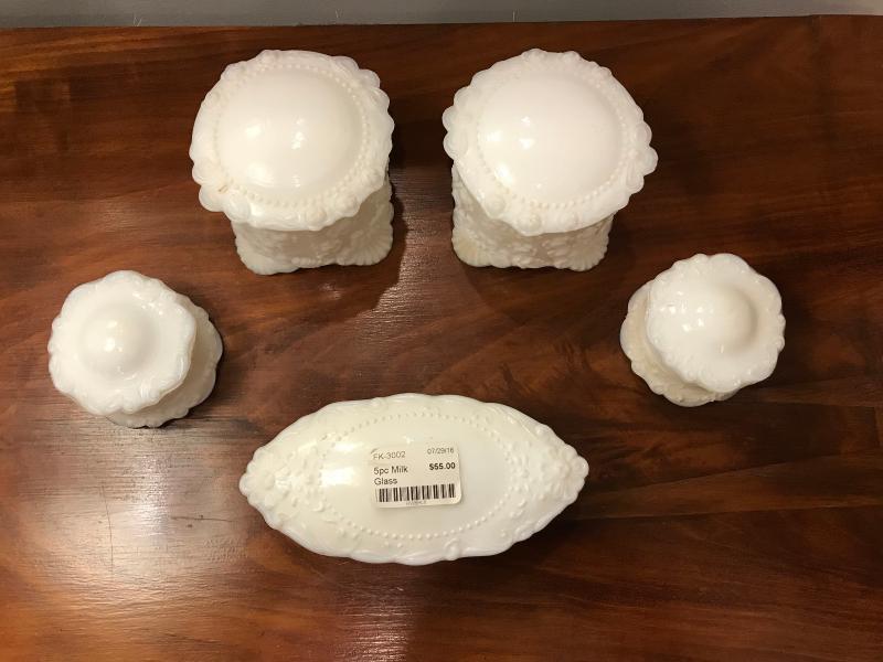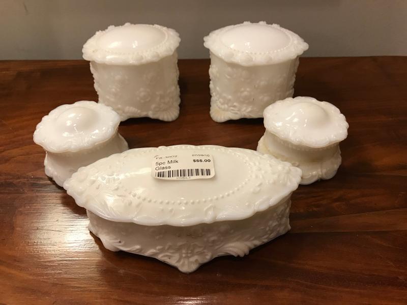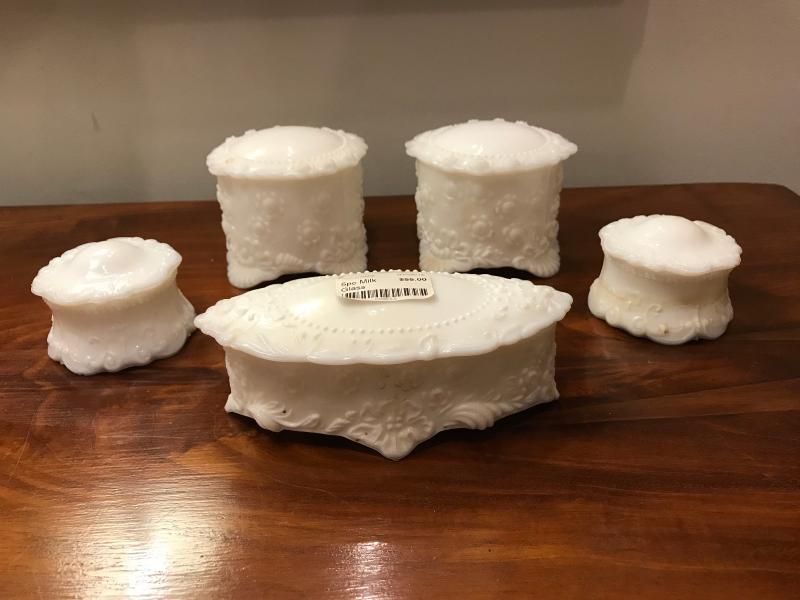 Lot 95-Lot of 5 Victorian Milk Glass Dresser Boxes