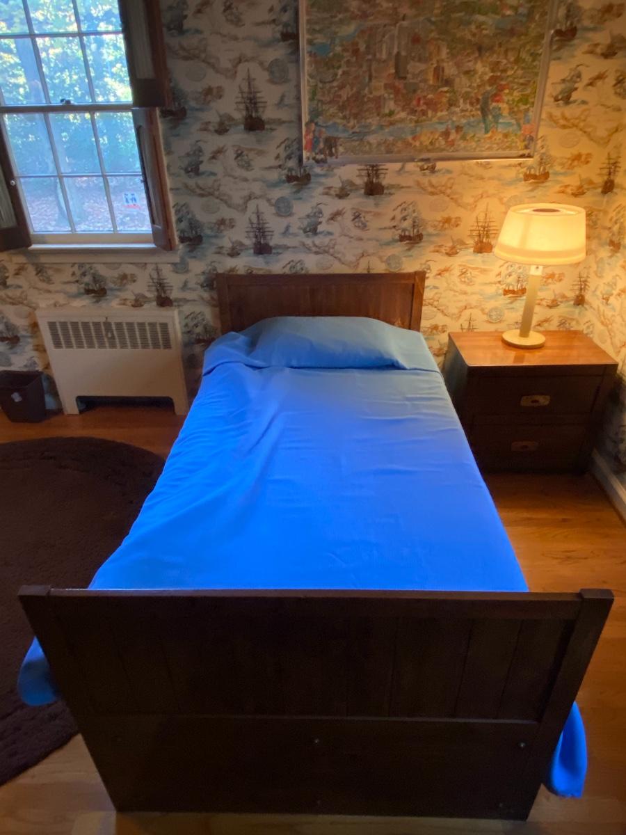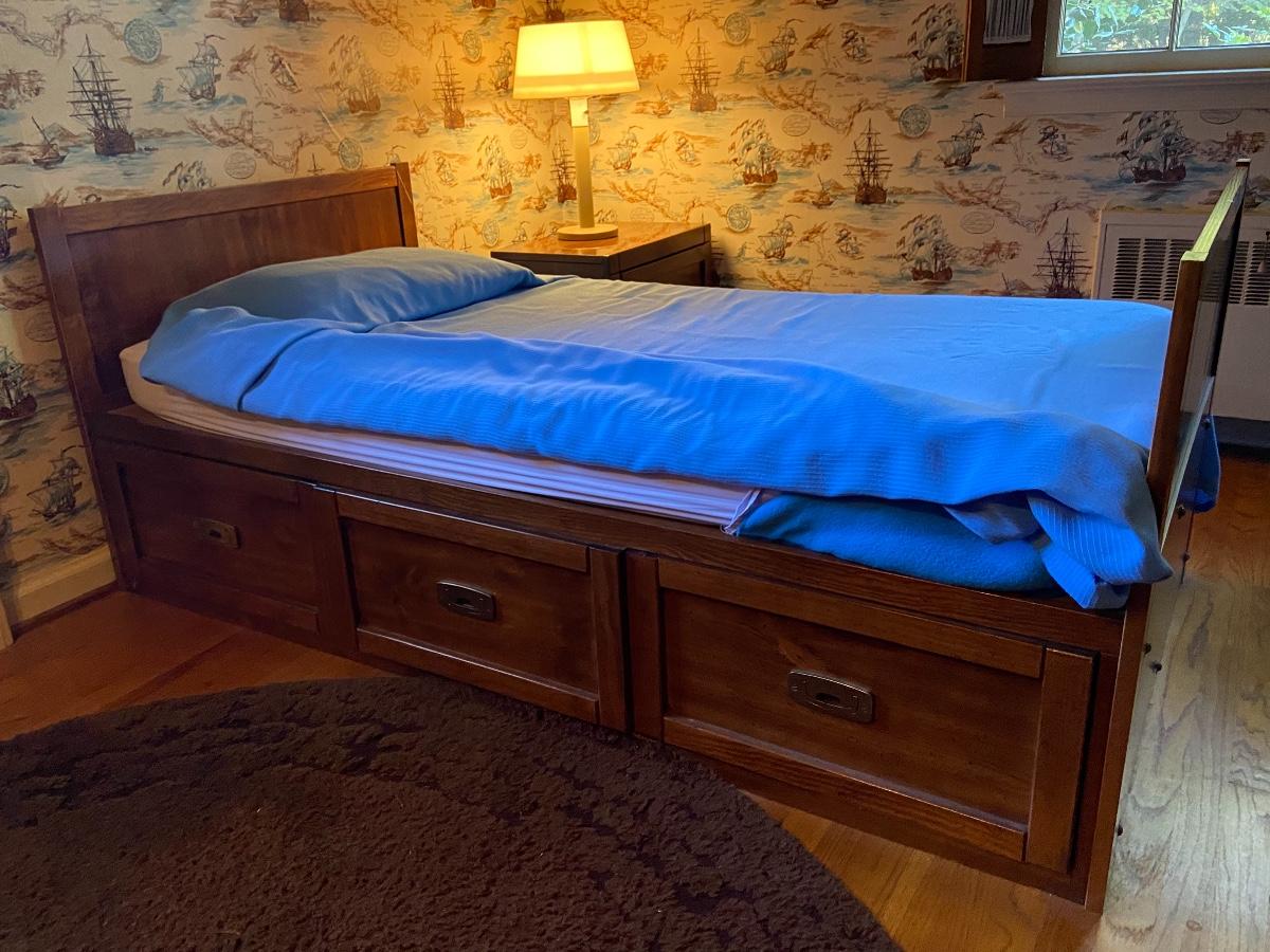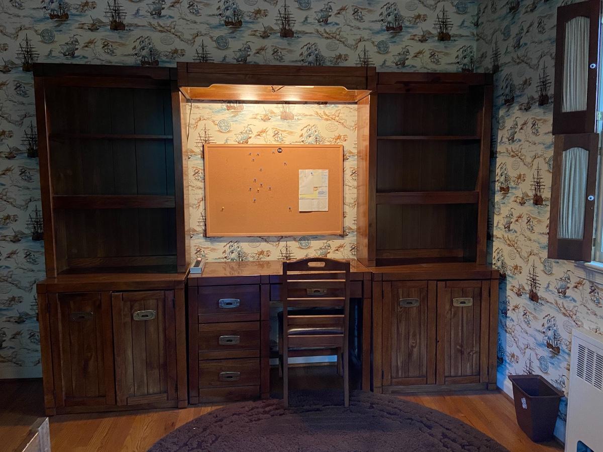 3 Bookcases, Storage bed, Nightstand, Dresser, Desk and light bridge. LAMP NOT INCLUDED. Mattress optional. Please see all pictures as they are the best representation of the items. The pictures show condition, measurements if taken, and what is included in the lot. Due to the large amount that we photograph and the time frame, we are not always able to take measurements. All items unless noted, are pre-owned and have been used. If you purchased furniture, you must bring help. We do not allow one person to carry large furniture out on their own. Bring help, tools and a truck for the safety of our client’s homes, and your personal safety. Company policy. Thank you.