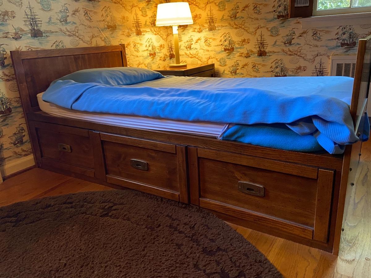 Lot F500: Twin Bedroom Set: Desk, Storage Twin Bed, Dresser, Nightstand, Bookcases...