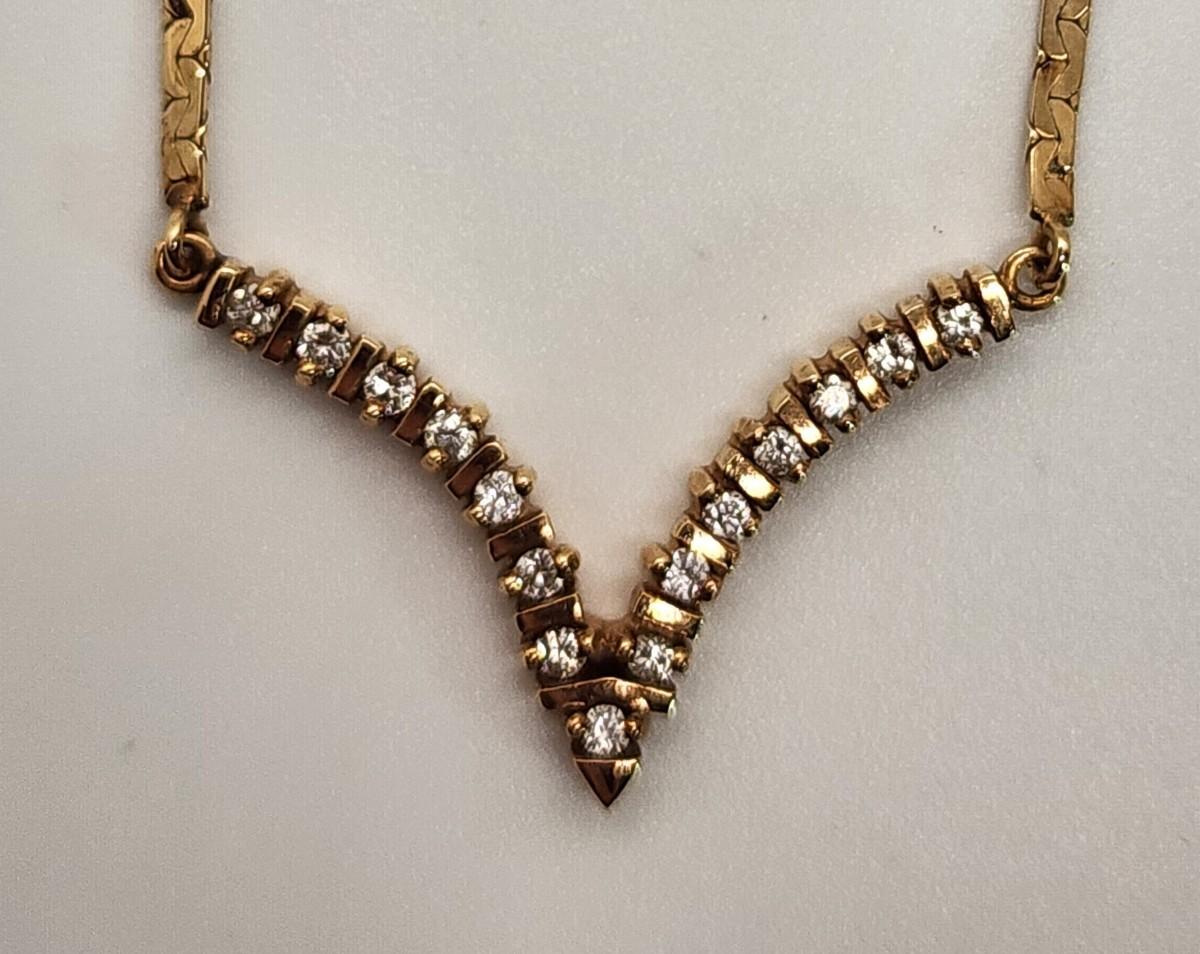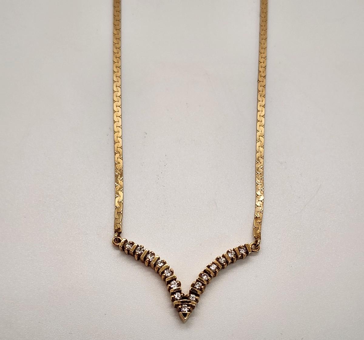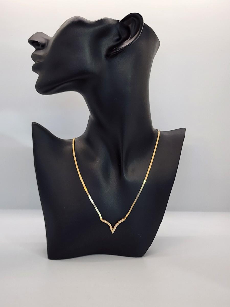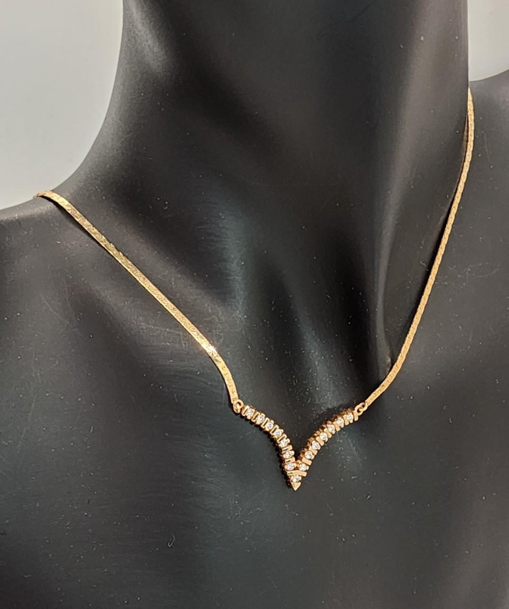 Lot FJ 300: 8.8gtw 14k yellow Gold Herringbone Channel Set Diamond V Necklace and matching earrings