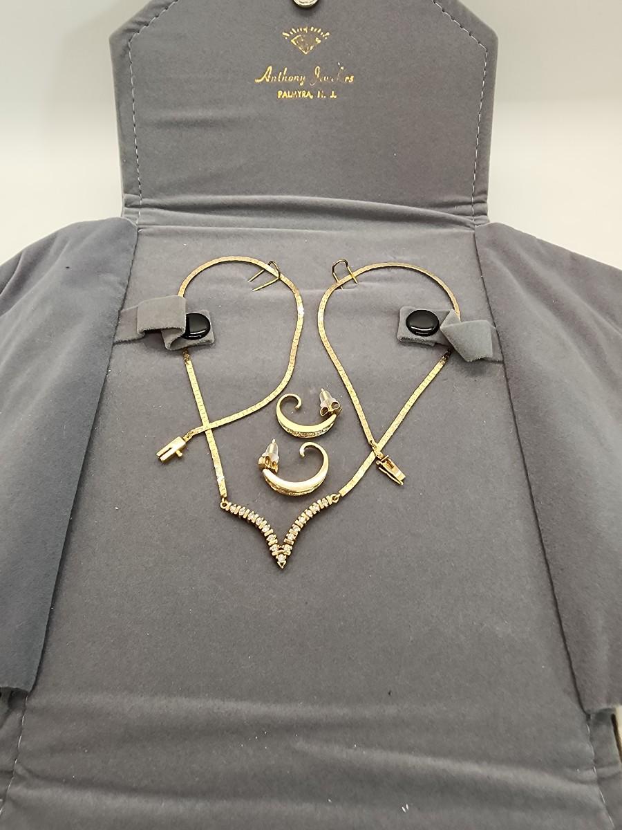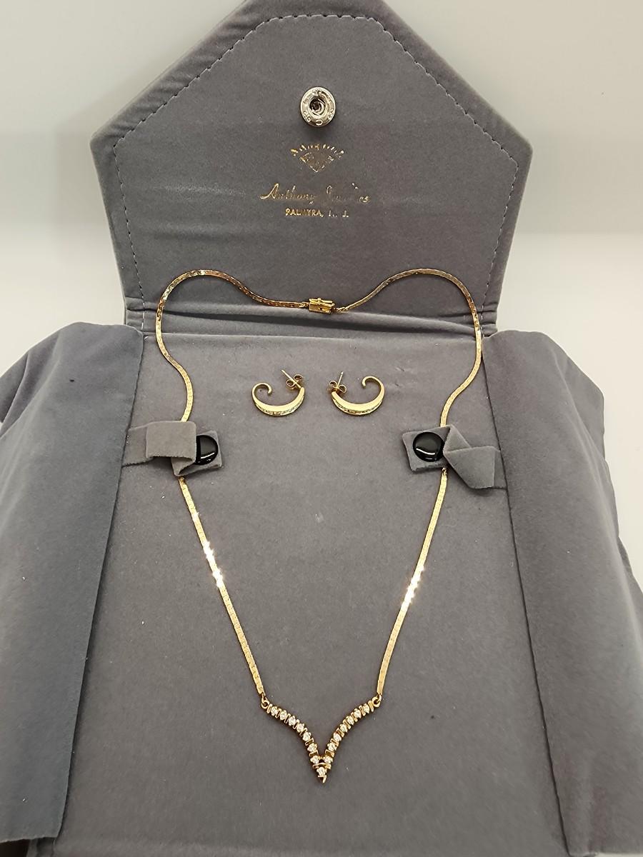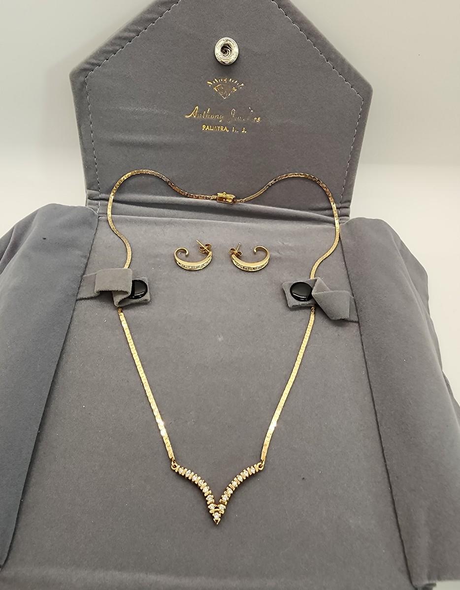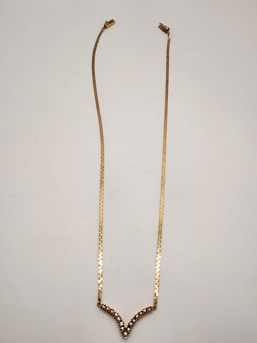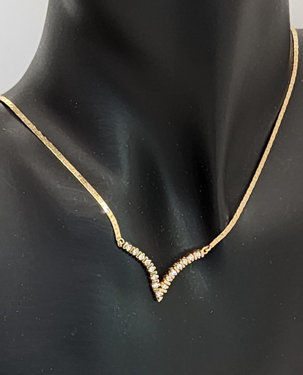 Lot FJ 300: 8.8gtw 14k yellow Gold Herringbone Channel Set Diamond V Necklace and matching earrings