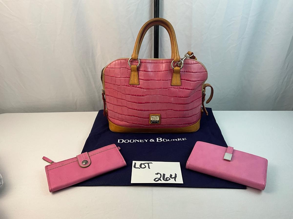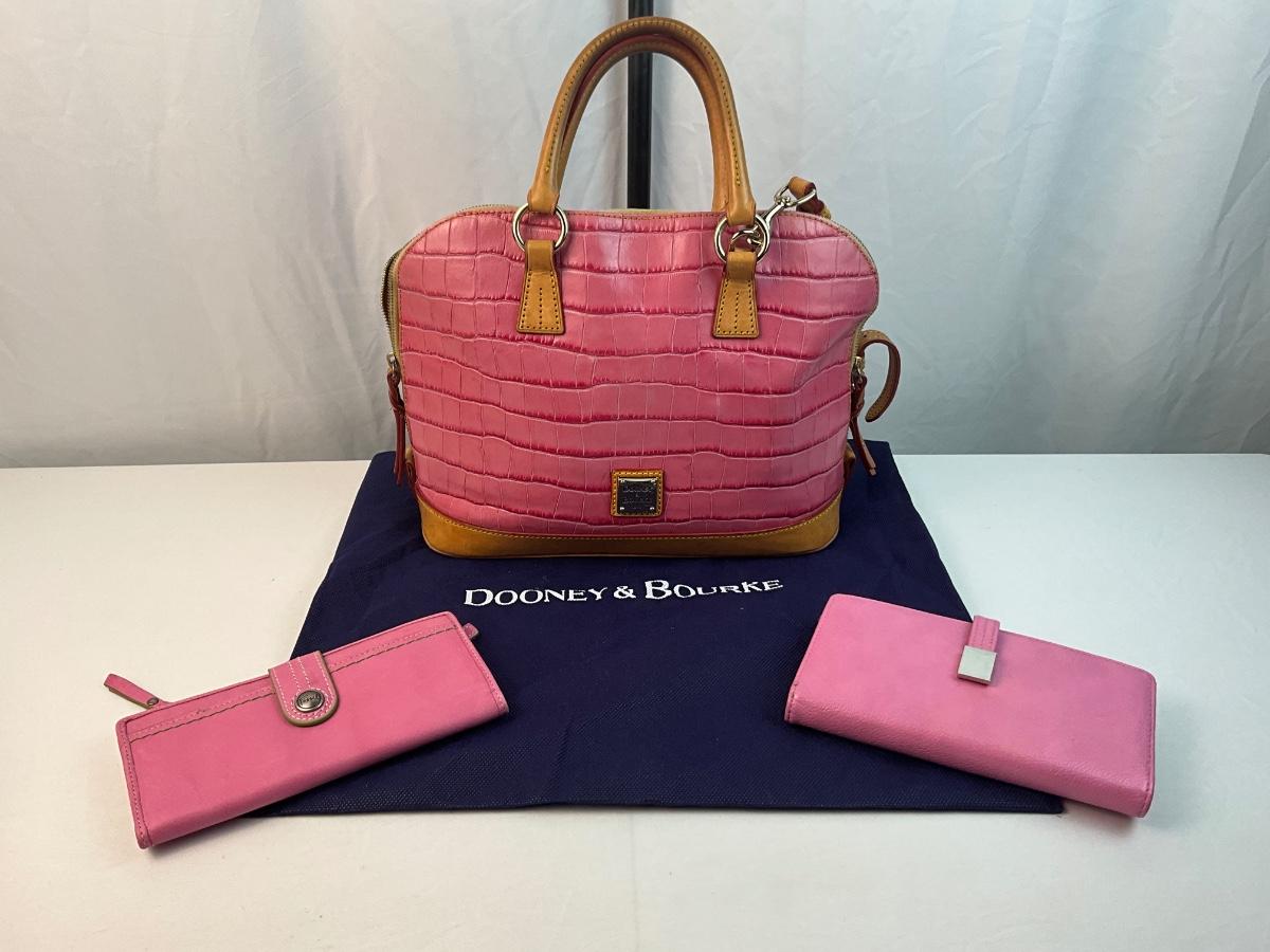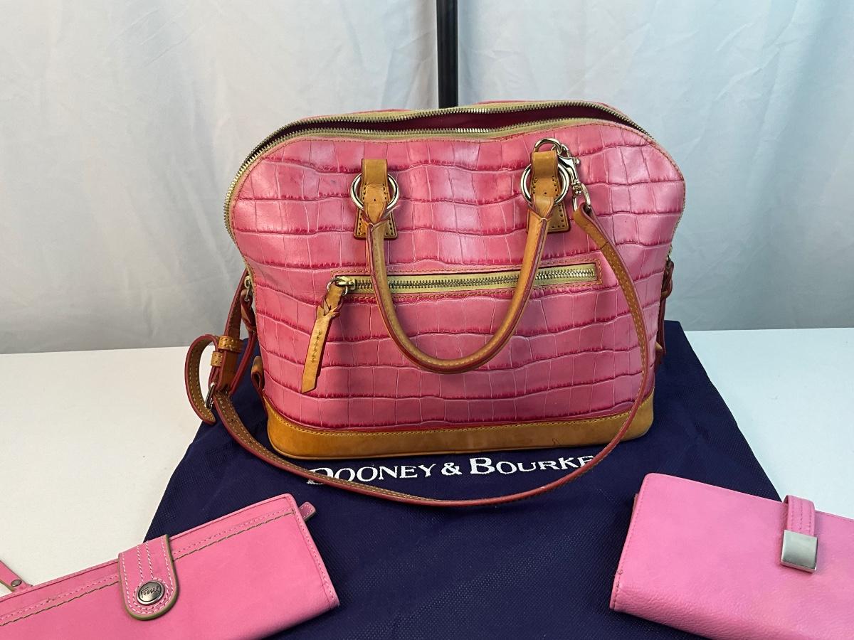 Lot G 264 Dooney & Bourke Croc Embossed Leather Satchel Keychain and Two Wallets