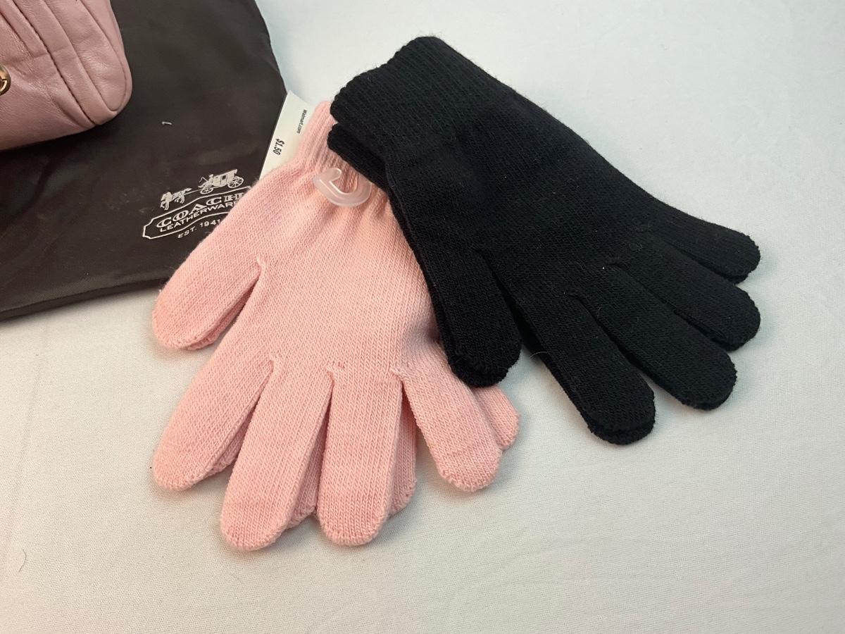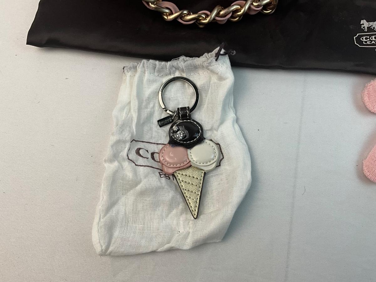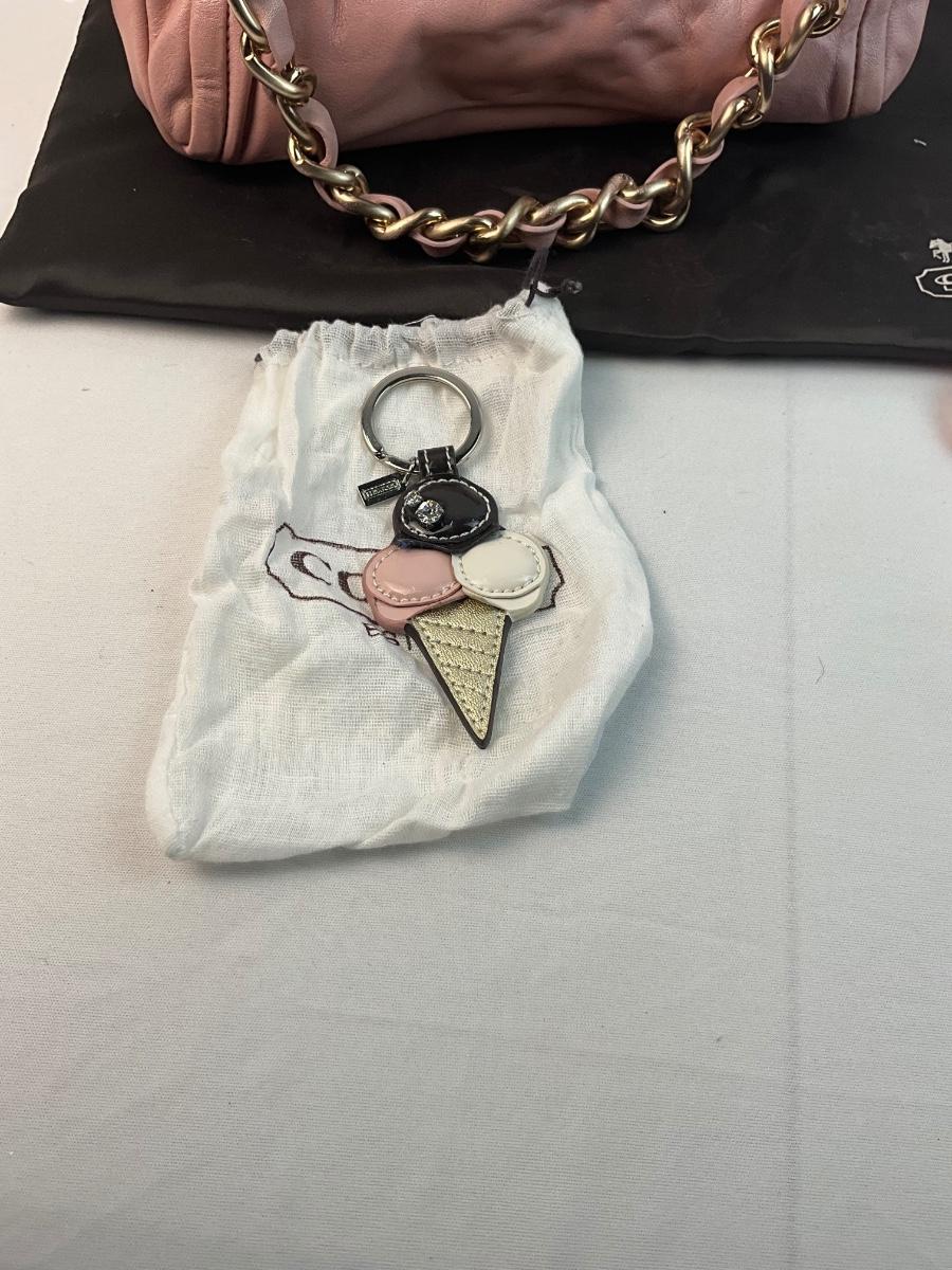 New With Tags Vintage Coach Parker kiss lock cowhide handbag. Coach Ice Cream Cone keychain. Two pairs of gloves.