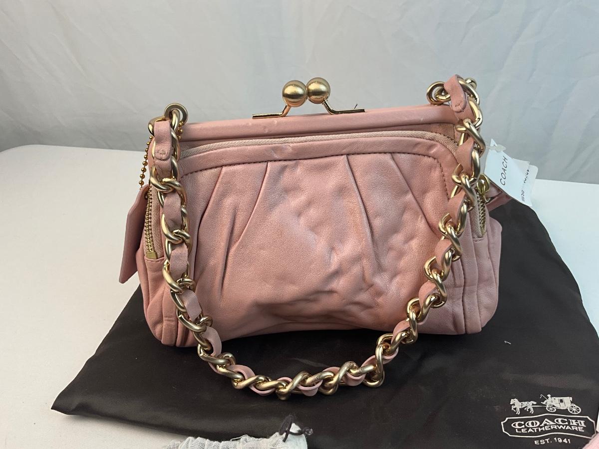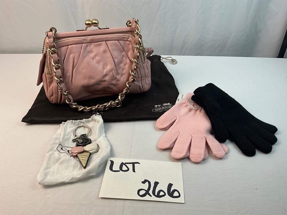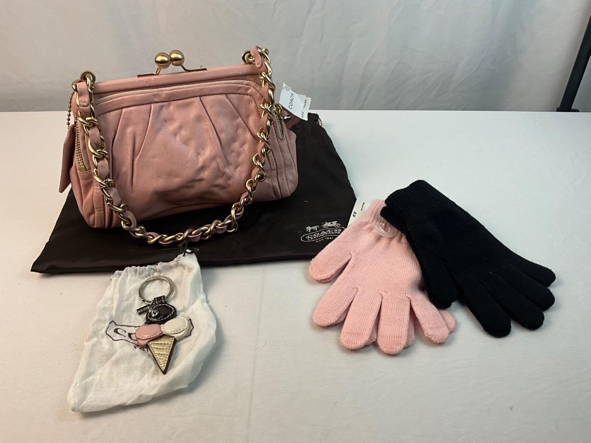 Lot G 266 Vintage NWT Coach Parker Kiss Lock Handbag Coach Ice Cream Keychain and Two Pairs of Gloves