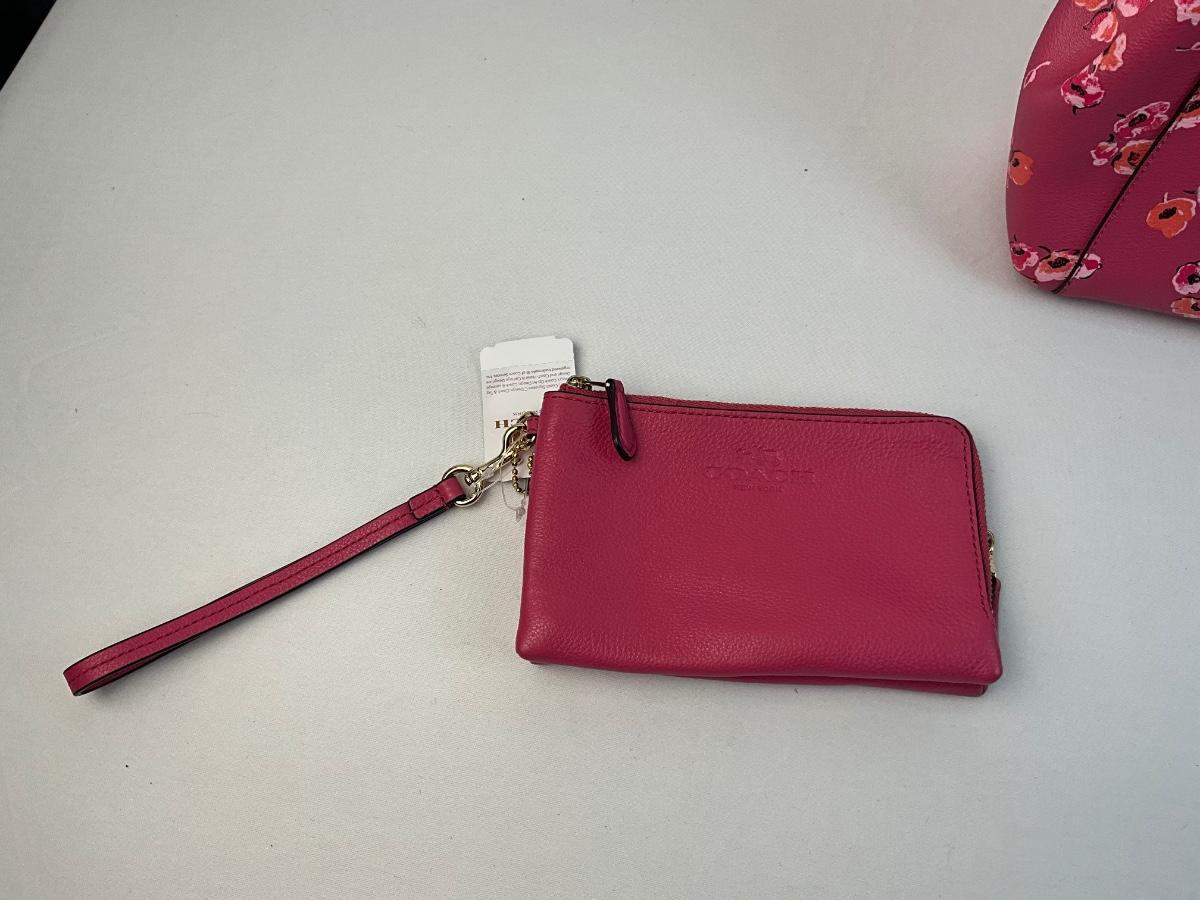 New With Tags Coach Wildflower small Christie carryall handbag. New With Tags Coachdouble zip wristlet. Coach Owl keychain.