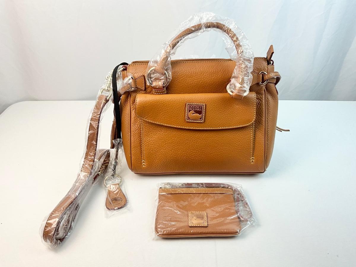 New With Tags Dooney & Bourke pebbled leather handbag with optional shoulder strap and matching coin purse.