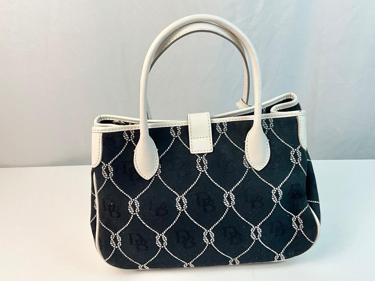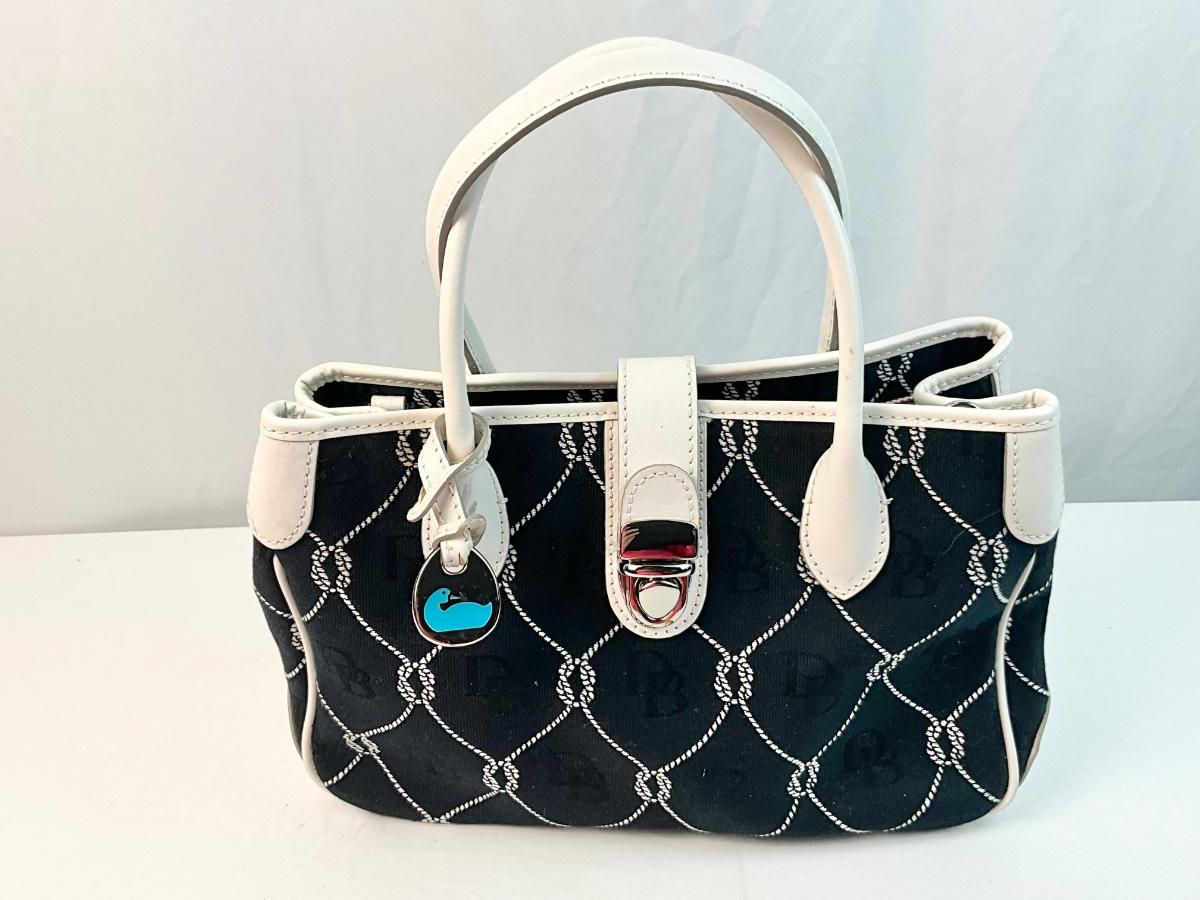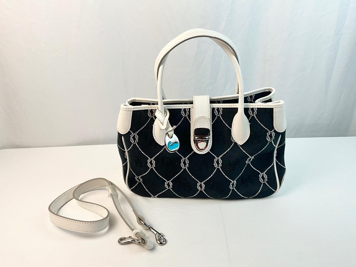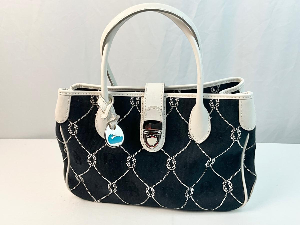 Dooney & Bourke black canvas nautical handbag with optional shoulder strap.