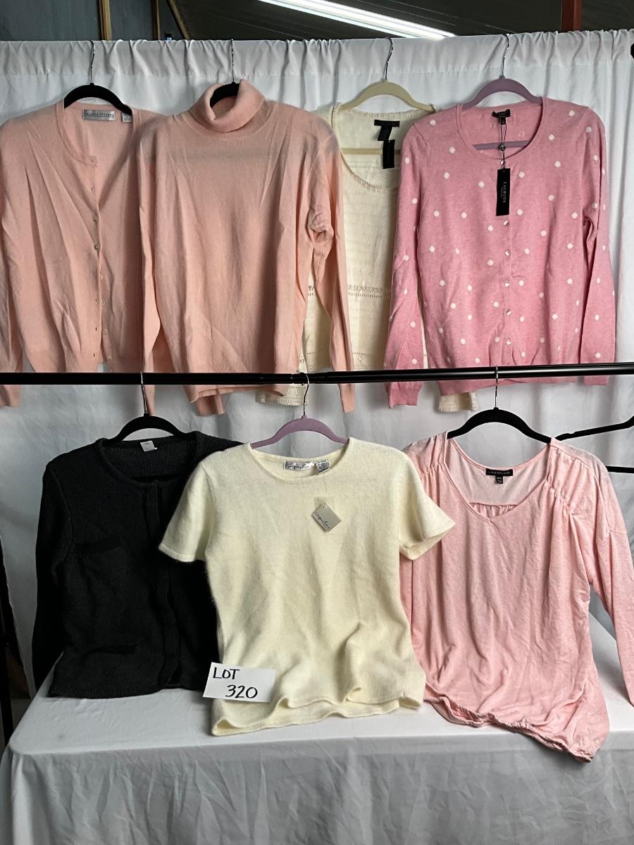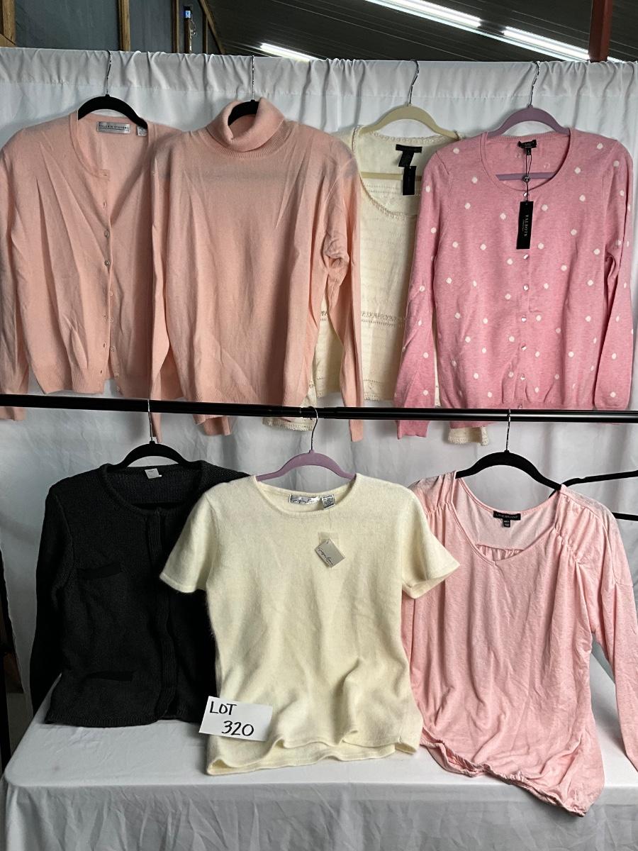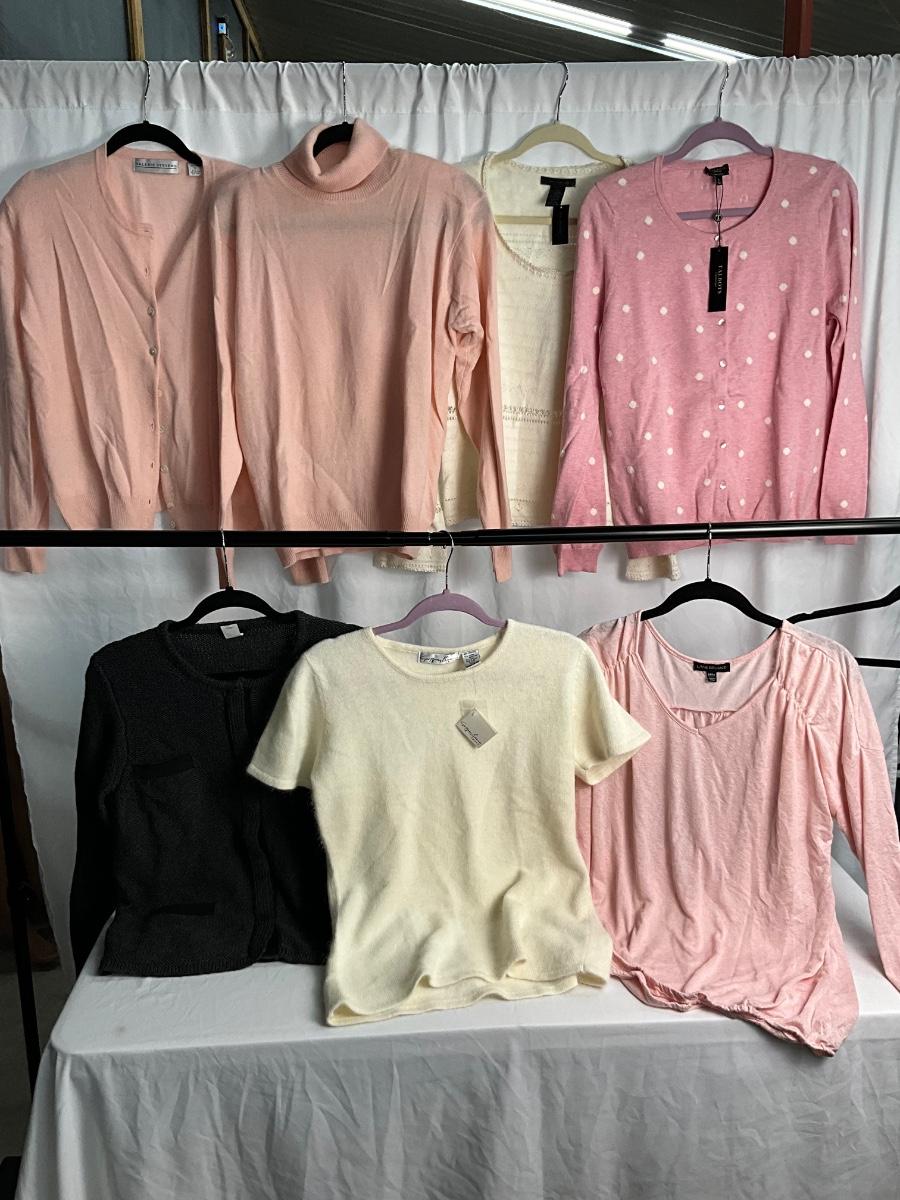 The lot contains 7 tops, some are cashmere, all sized large. Brands included but not limited to are Geoffrey Beene, J. Crew, Talbots, The Limited and more.