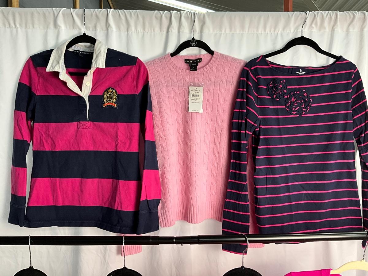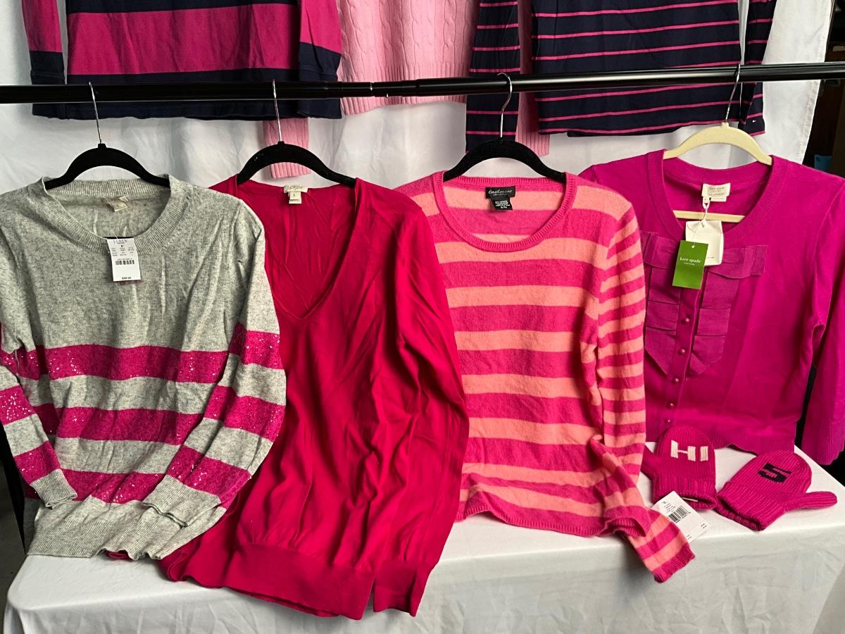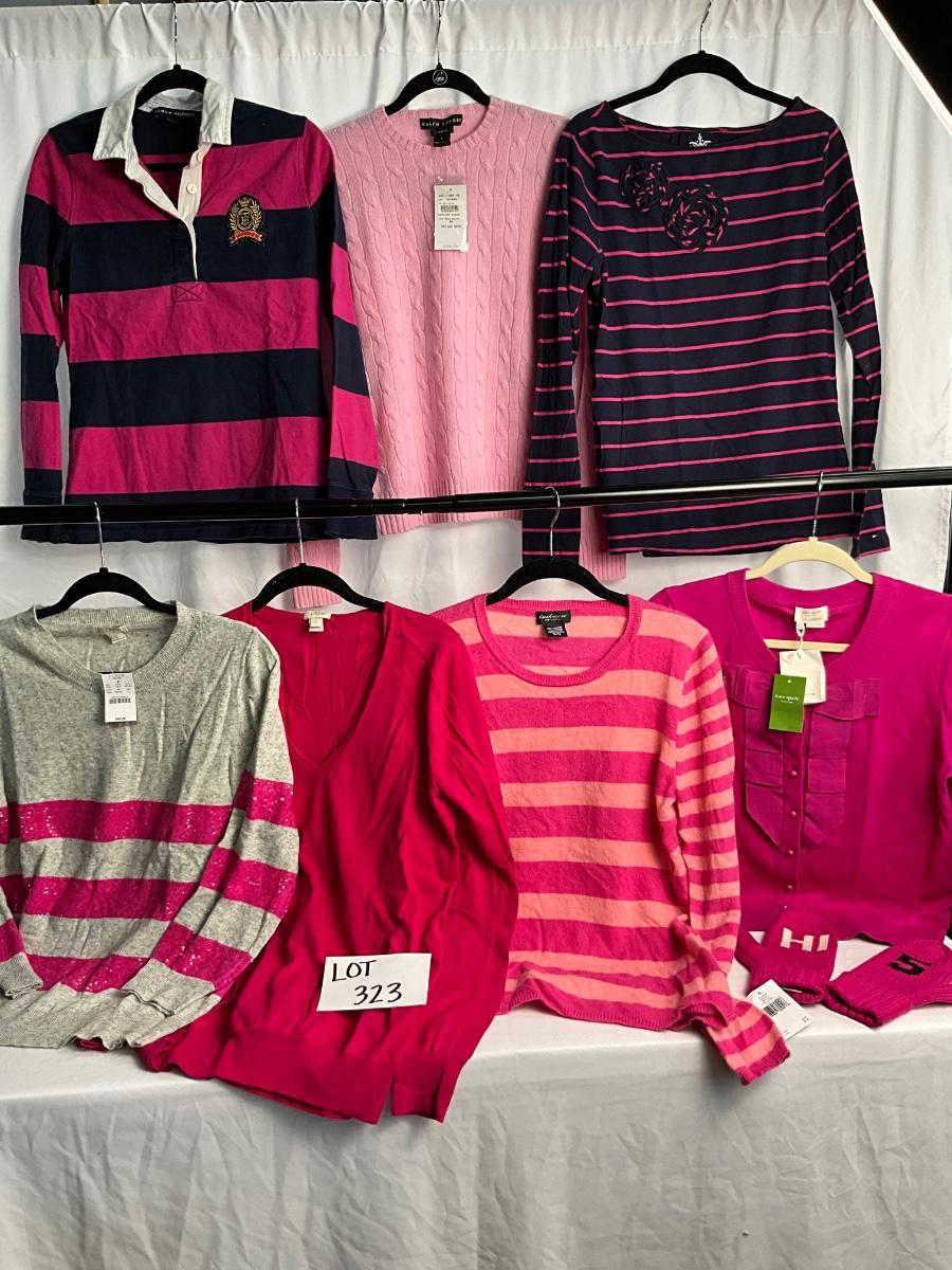 The lot contains tops, most are new with tags. Brands included but not limited to are Kate Spade, Cashmere by Lord & Taylor, Ralph Lauren, J. Crew and Tommy Hilfiger.