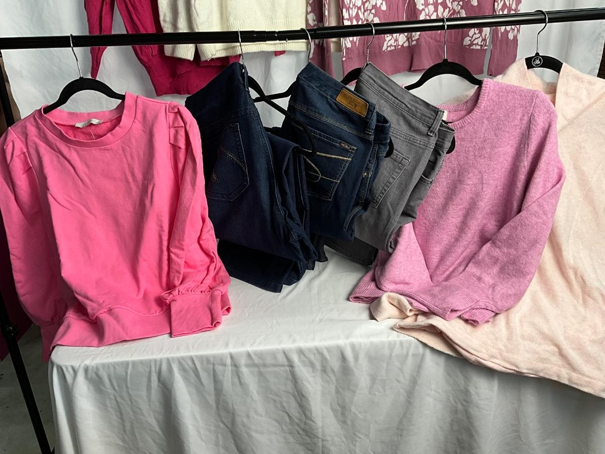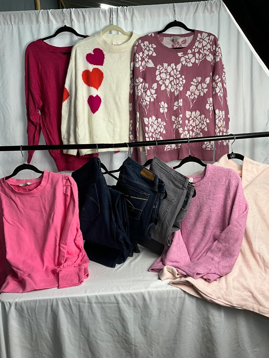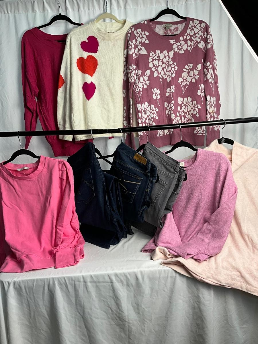 The lot contains 3 pairs of Jeans and 6 tops. All are size XL. Brands included but not limited to are Melissa McCarthy, Gloria Vanderbilt, Lane Bryant, Loft and more.