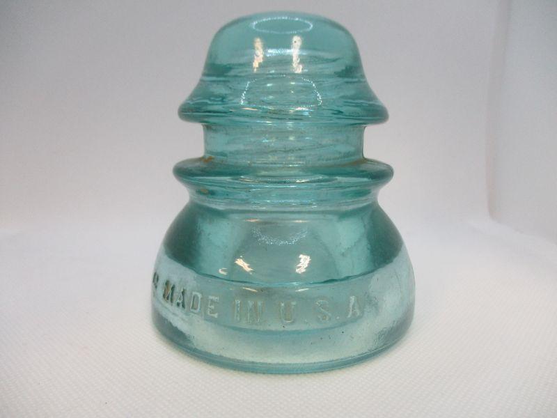 This aqua glass insulator is in excellent condition and it is about 3.75" tall.