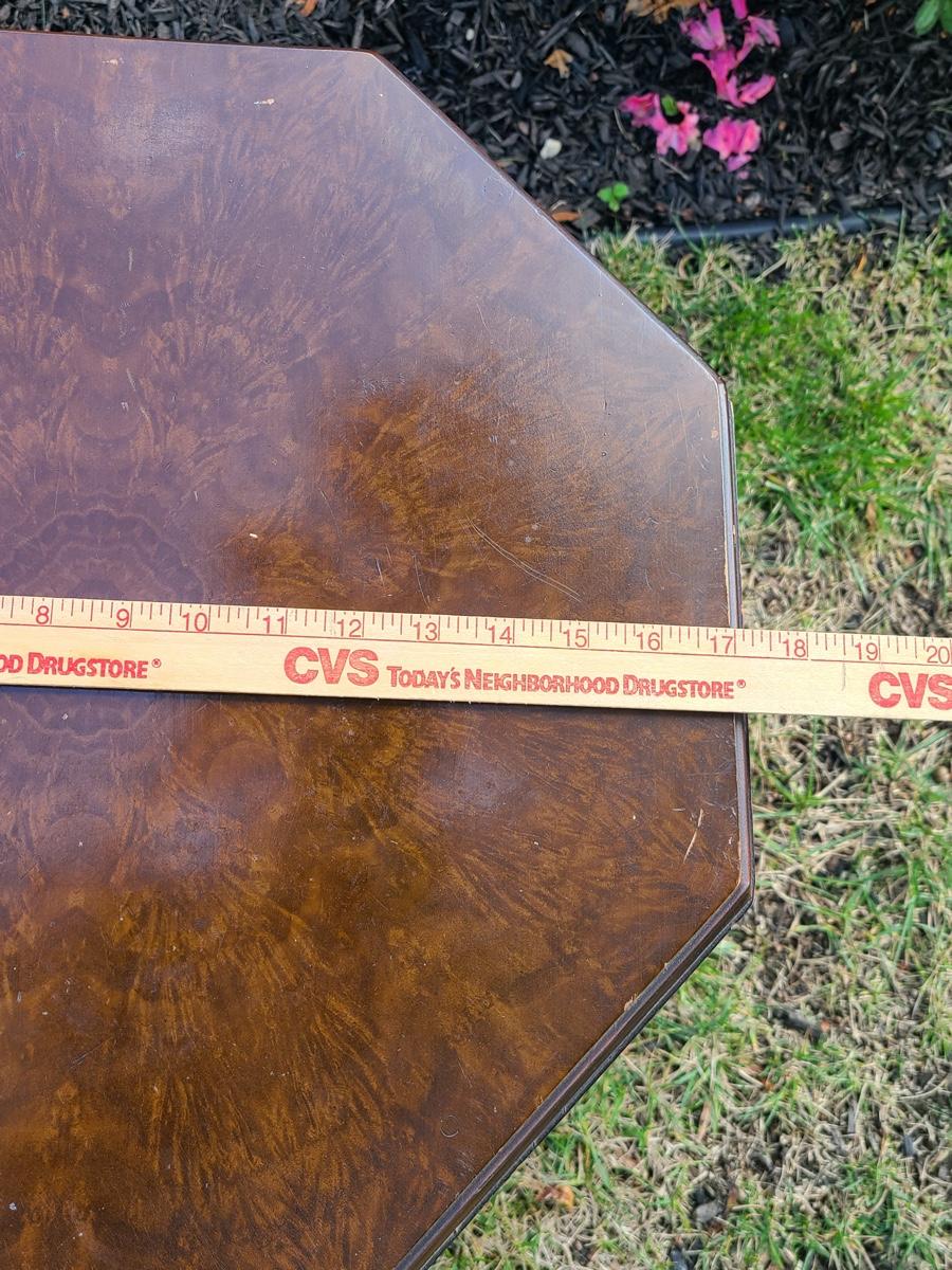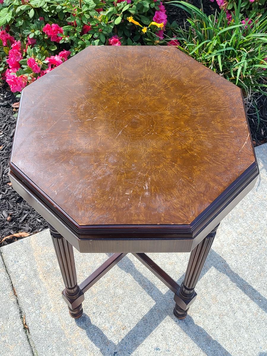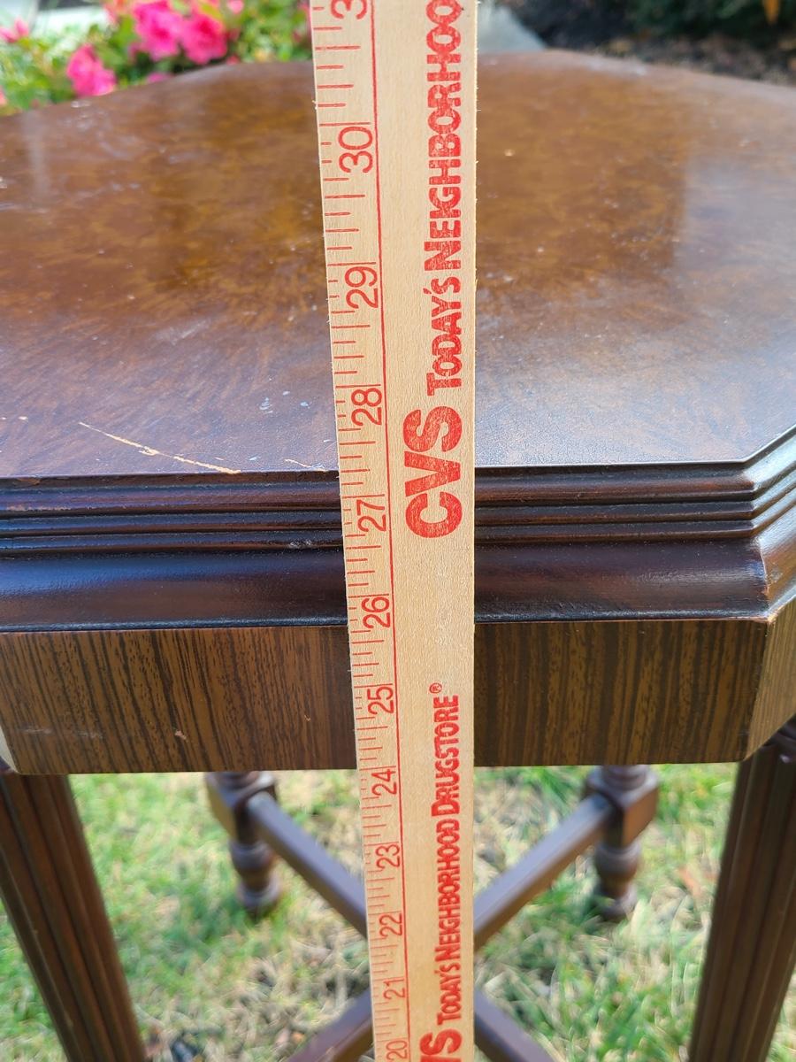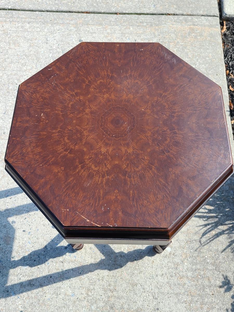 This lovely little table has a unique pattern on top. It does show some minor wear due to age, but is sturdy and has great bones! Perfect as bedside table, accent table in the home, or plant stand. Please see all pictures as they are the best representation of the items. The pictures show condition, measurements if taken, and what is included in the lot. Due to the large amount that we photograph and the time frame, we are not always able to take measurements. All items unless noted, are pre-owned and have been used. If you purchased furniture, you must bring help. We do not allow one person to carry large furniture out on their own. Bring help, tools and a truck for the safety of our client’s homes, and your personal safety. Company policy. Thank you.