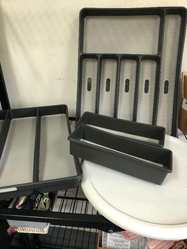 Lazy Susan tray, and organizers for flatware, utensils, junk drawer and anywhere in the house that needs organizing.