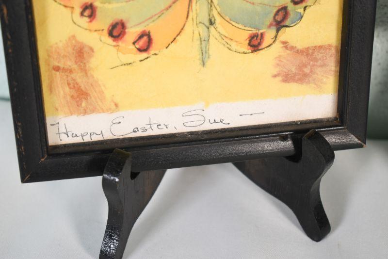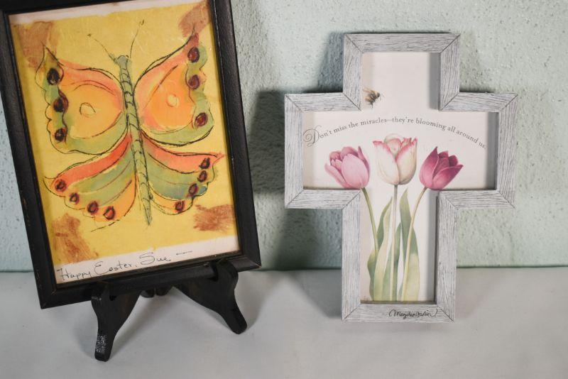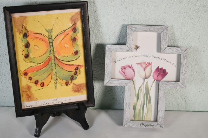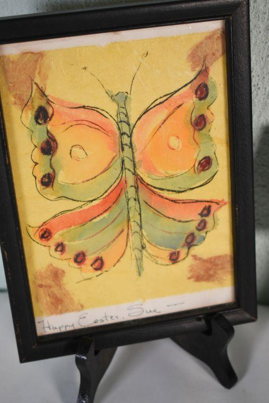 Two framed pictures, butterfly is an original pen and watercolor.