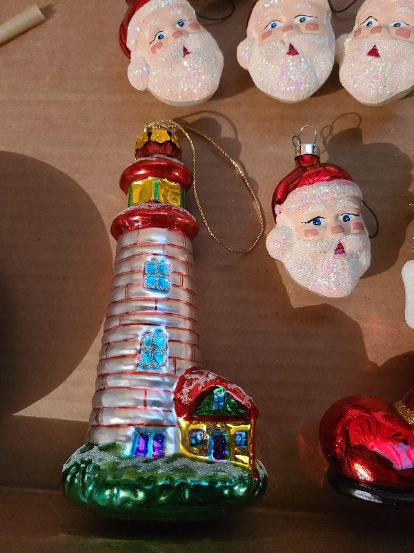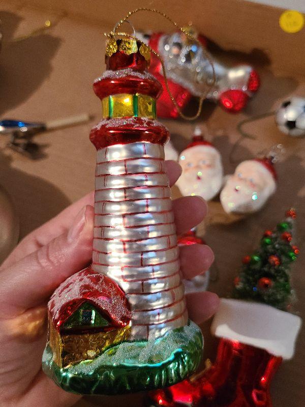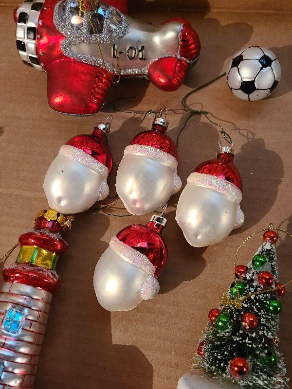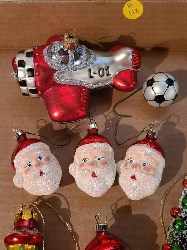 Lot B112: Glass Ornaments, Santa, Soccer and More
