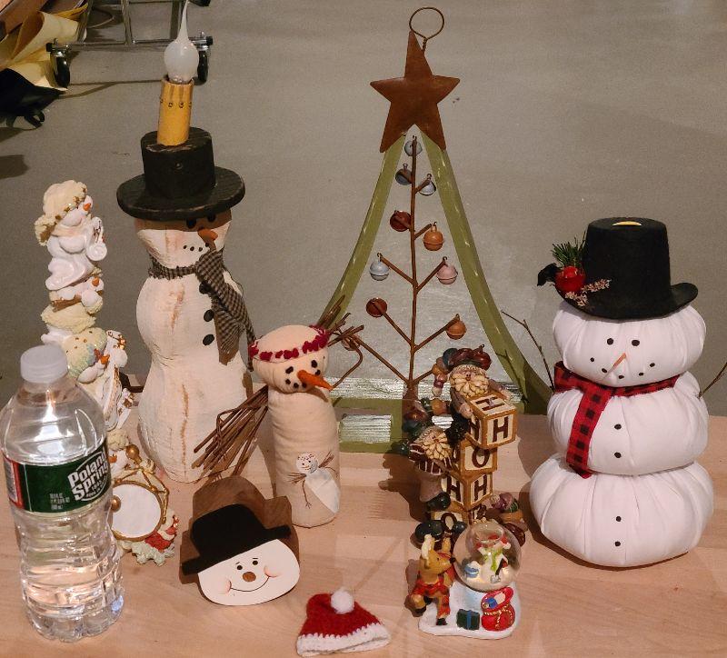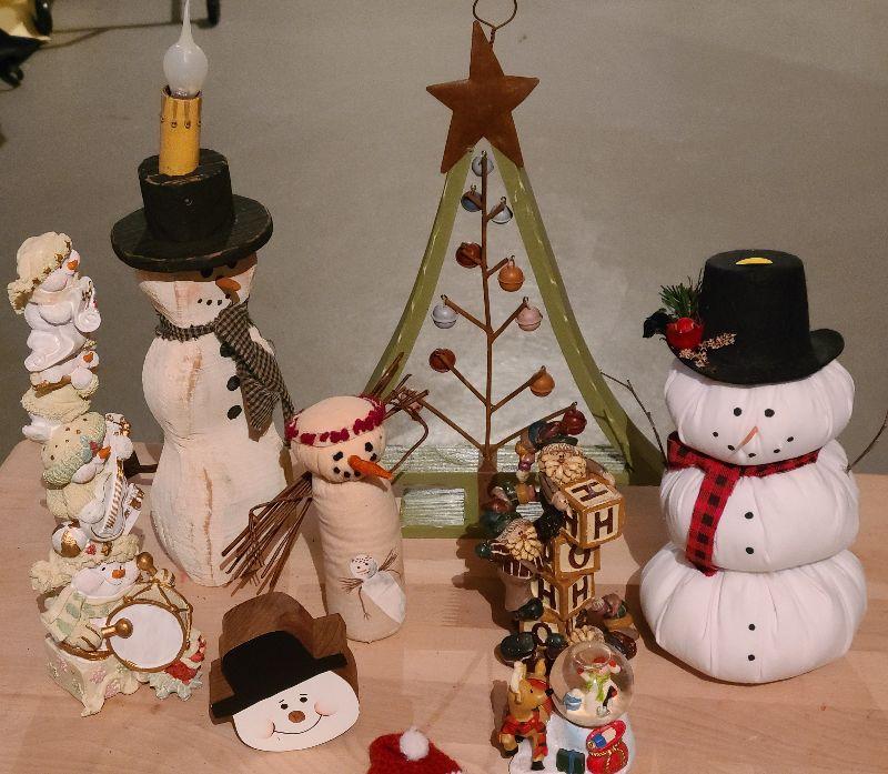 Fun lot of Holiday decor snowmen and more. Please see pics for condition and pricing