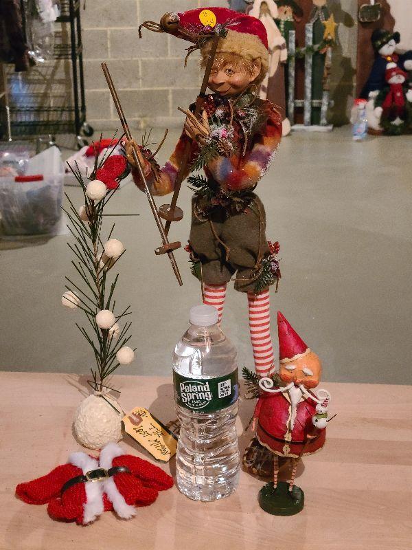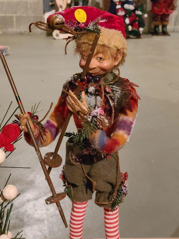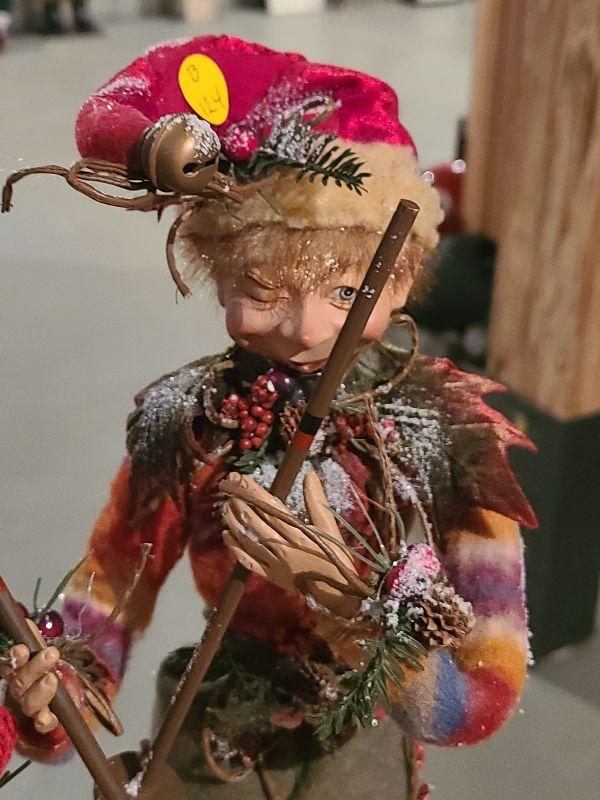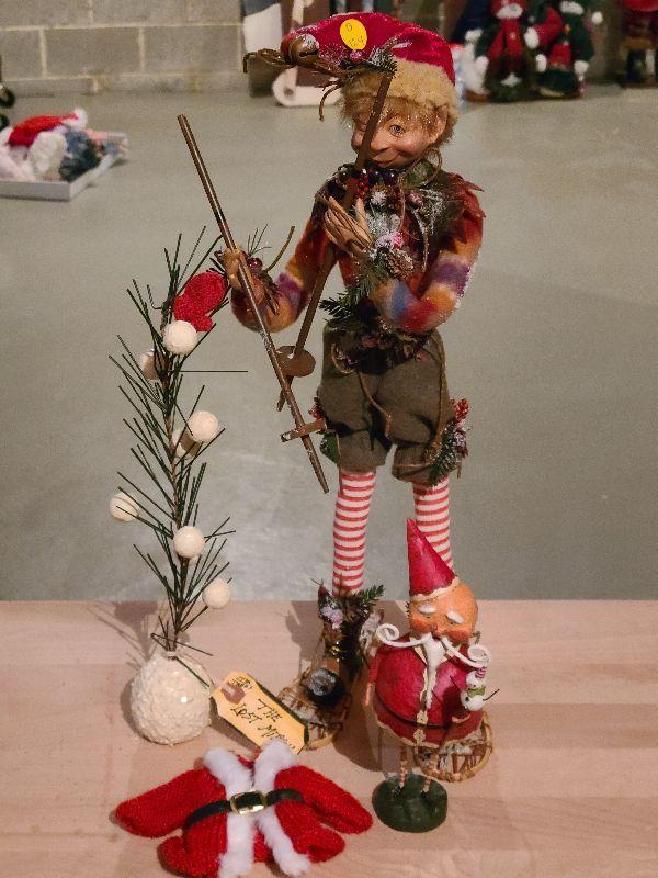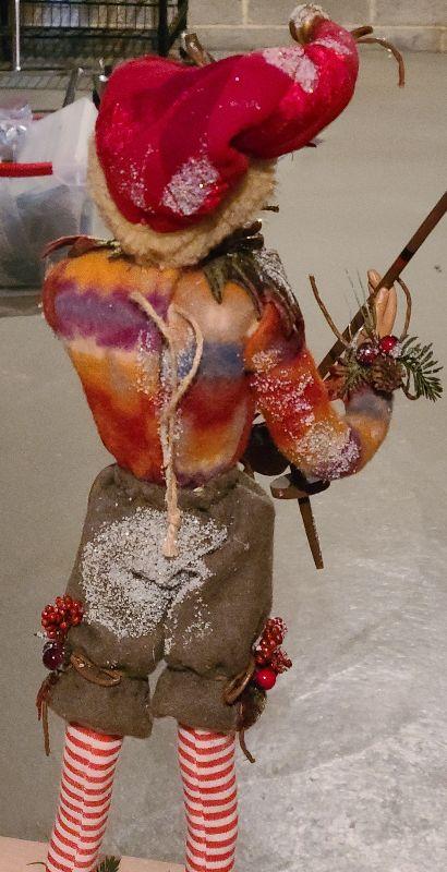 This is a fun set of holiday decor. The elf is so lifelike and craftsmanship is gorgeous! Please see pics for condition and sizing