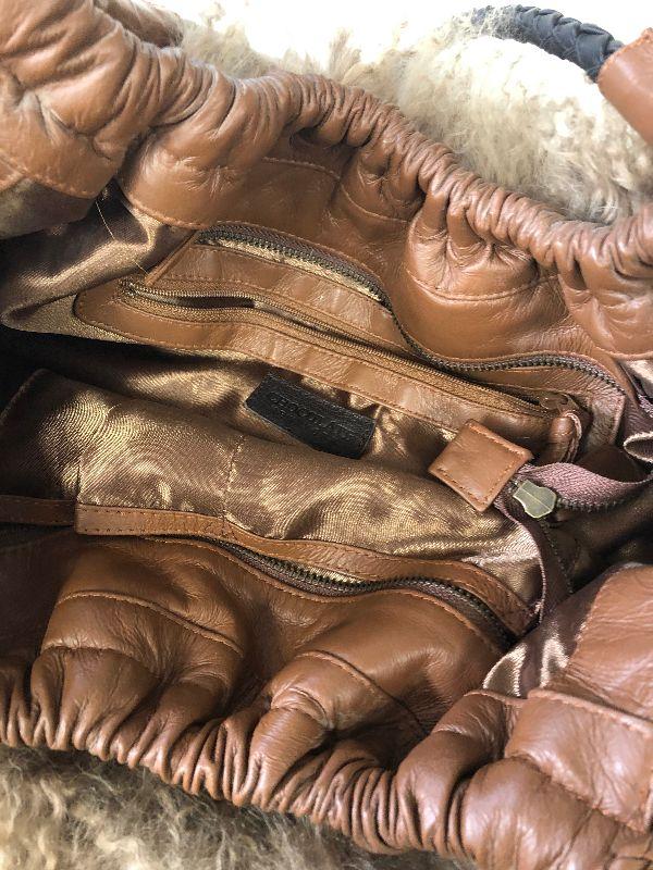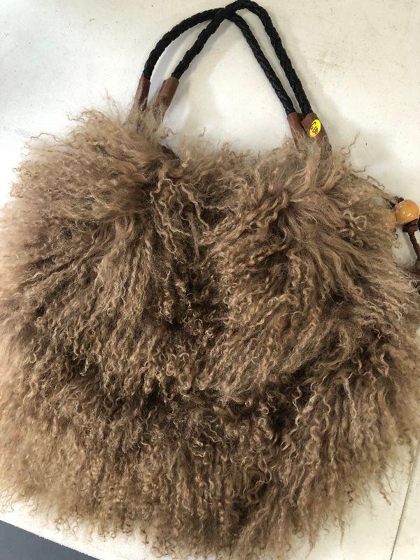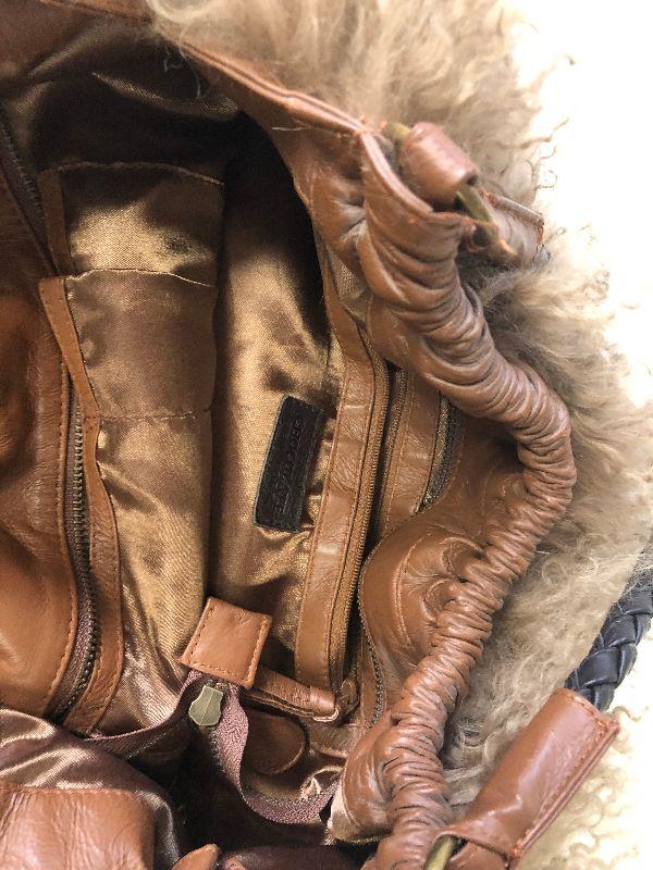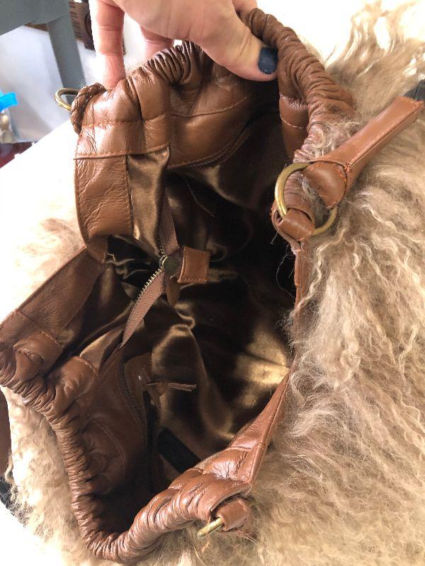 Chocolate of New York furry purse with leather interior.