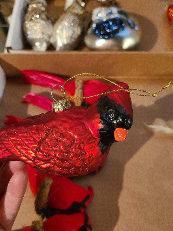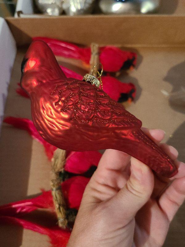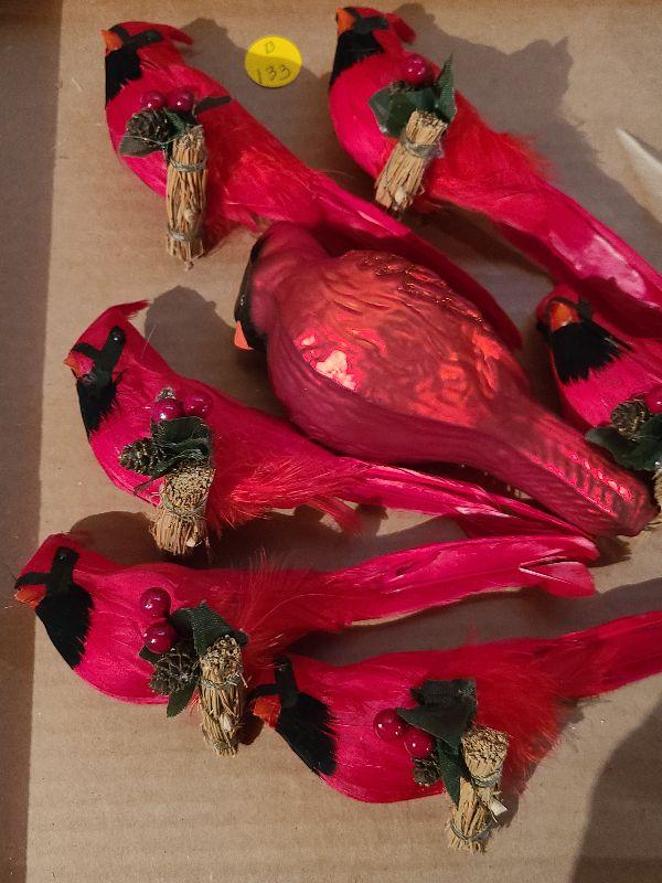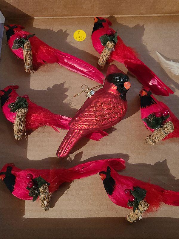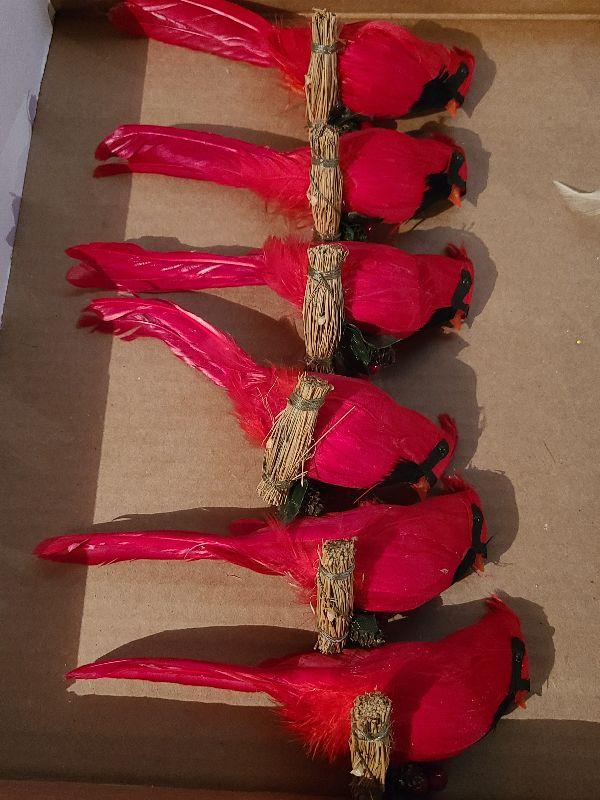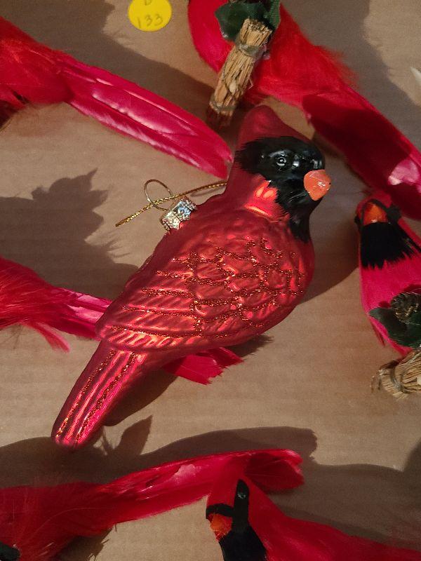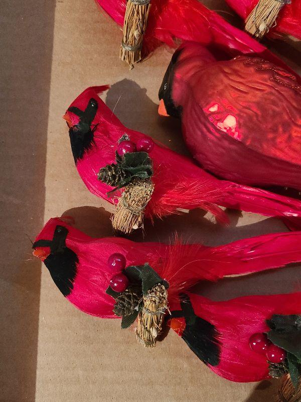 Fun lot of cardinals to use as holiday or household decor. Please see pics for condition. Center is glass ornament