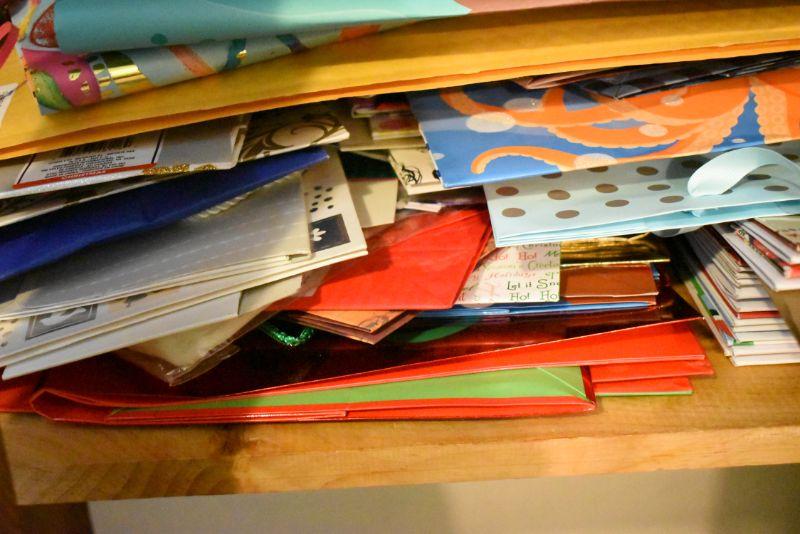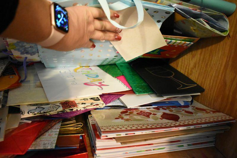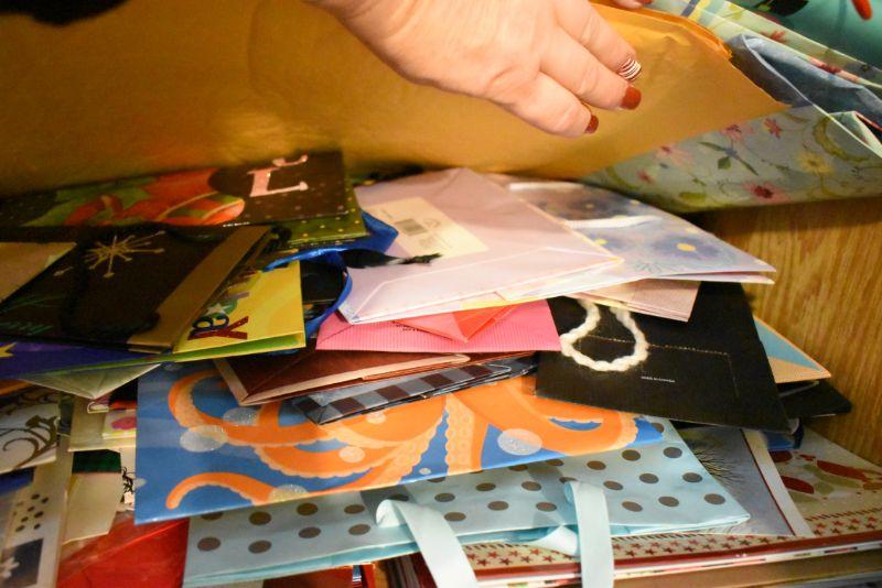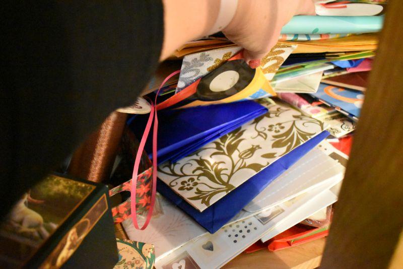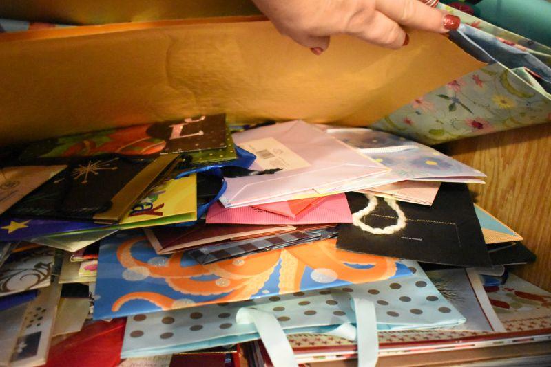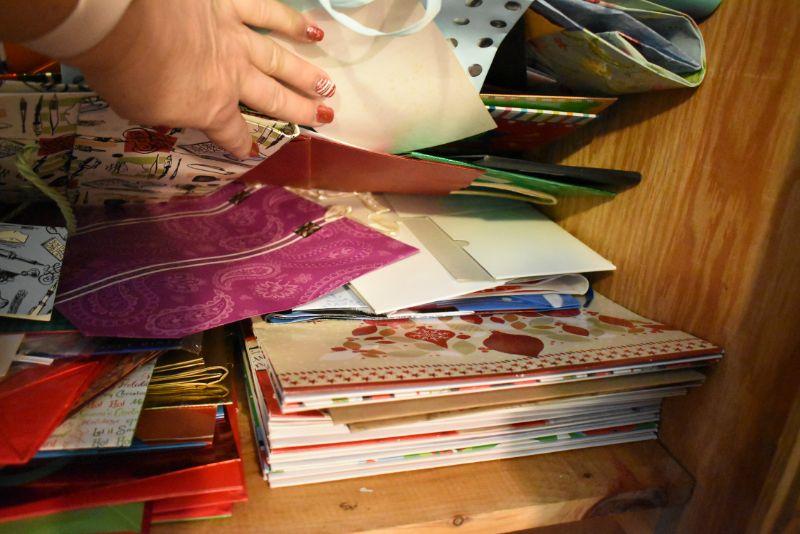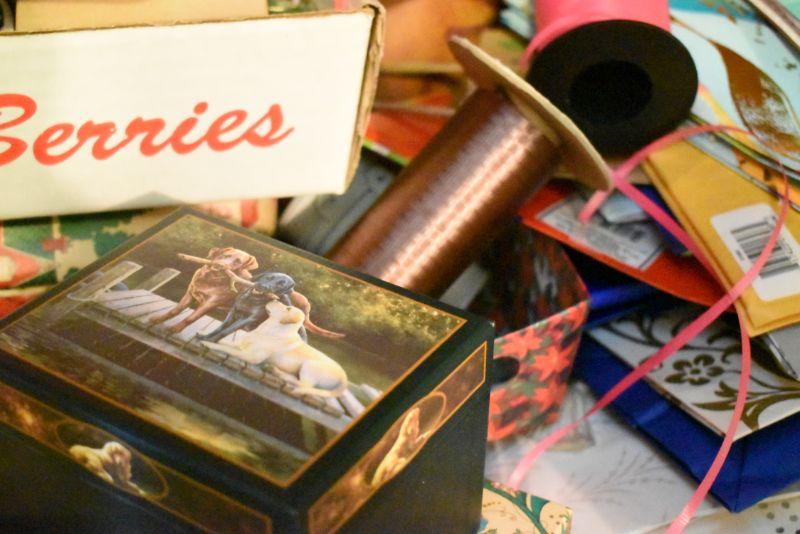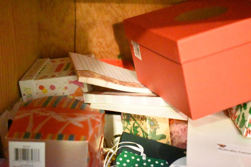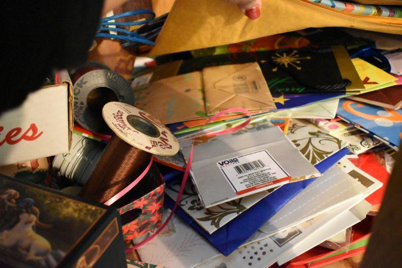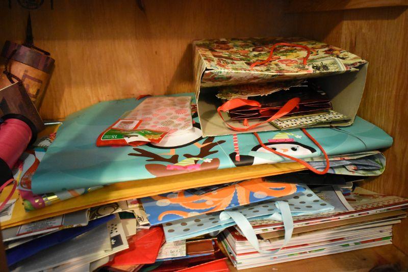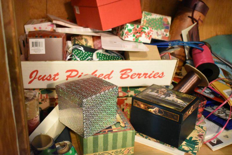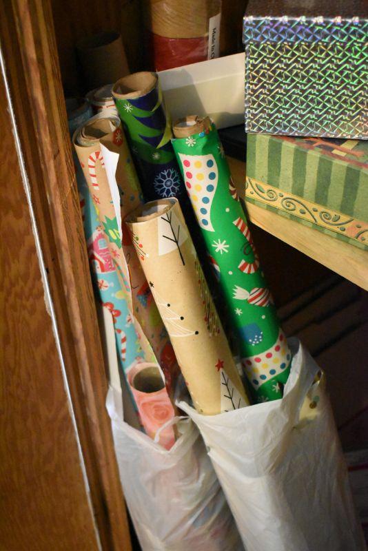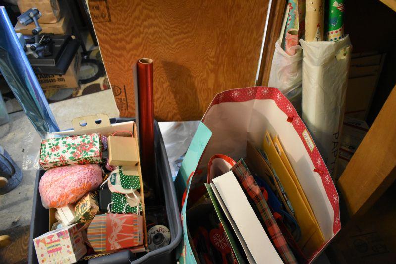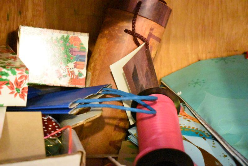 Rolls of wrapping paper, gift boxes, ribbon, gift bags and more. Bring box for packing.