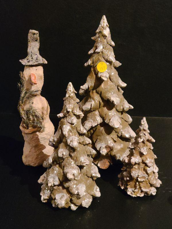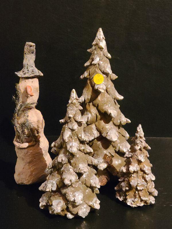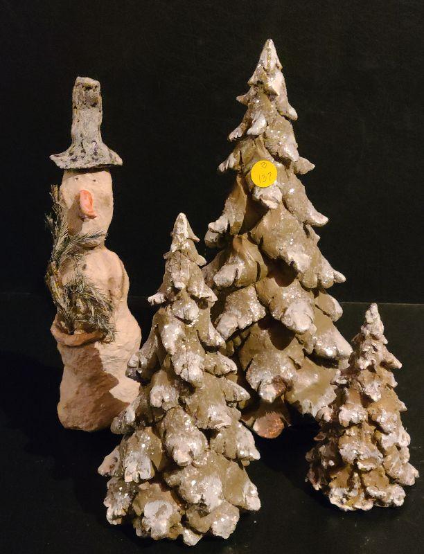 Lot B137: Artsy Holiday Decor Snowman and Trees