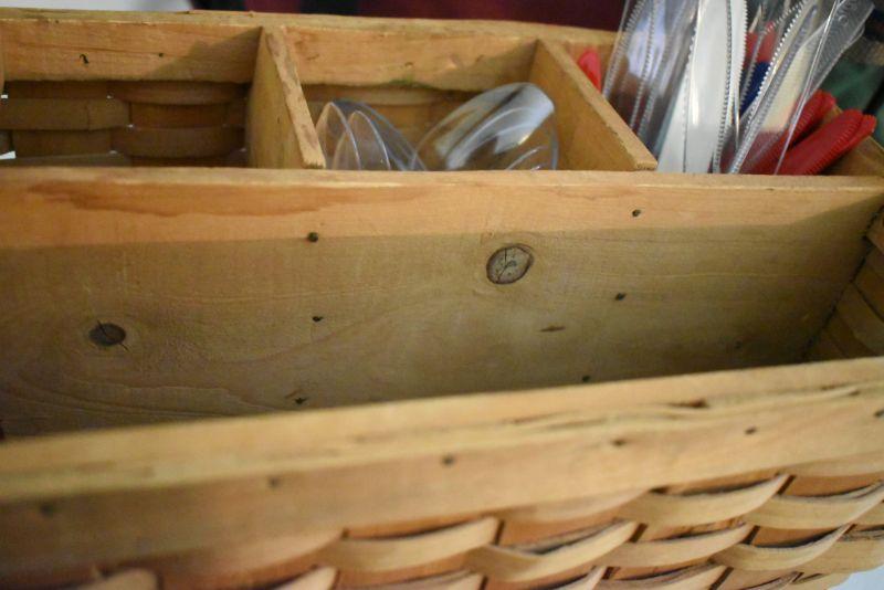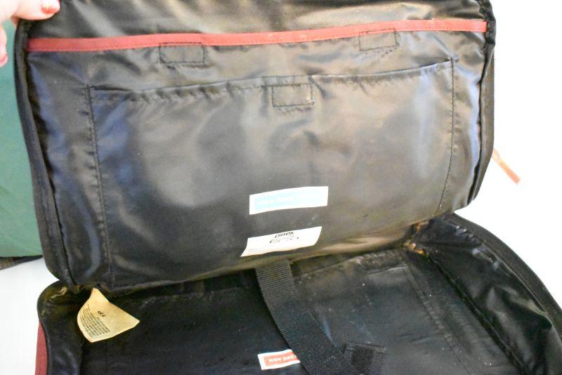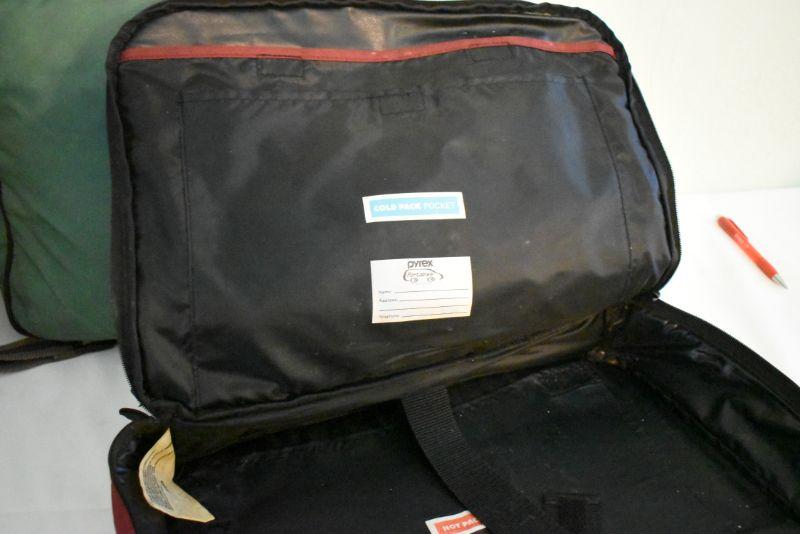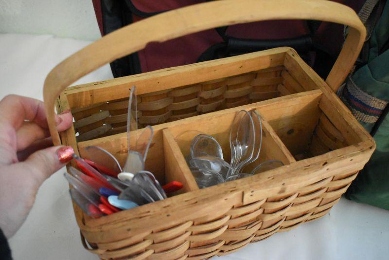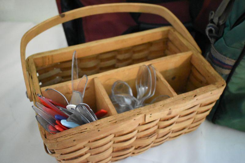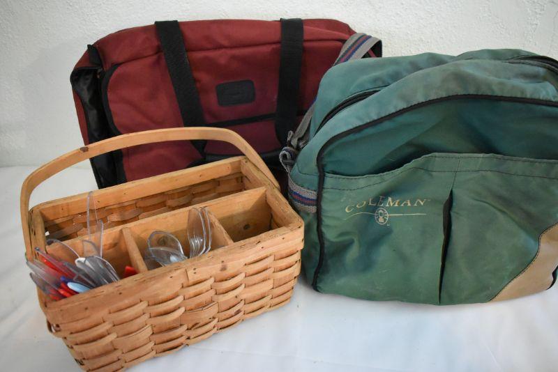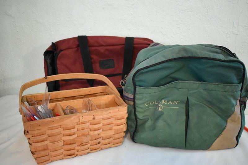 Basket for napkins and eating utensils, Two insulated bags for transporting food.