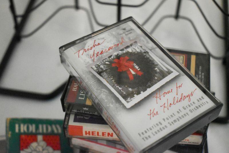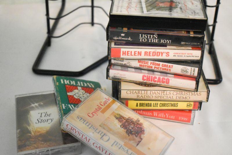Mostly Christmas music. Includes rack that is 30 inches long. Located in basement that has narrow, steep, cement steps, and a sharp turn to right at bottom..
