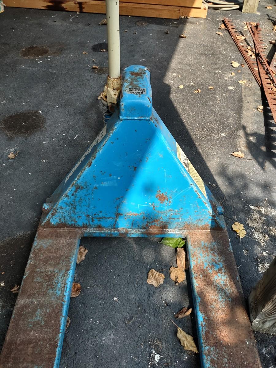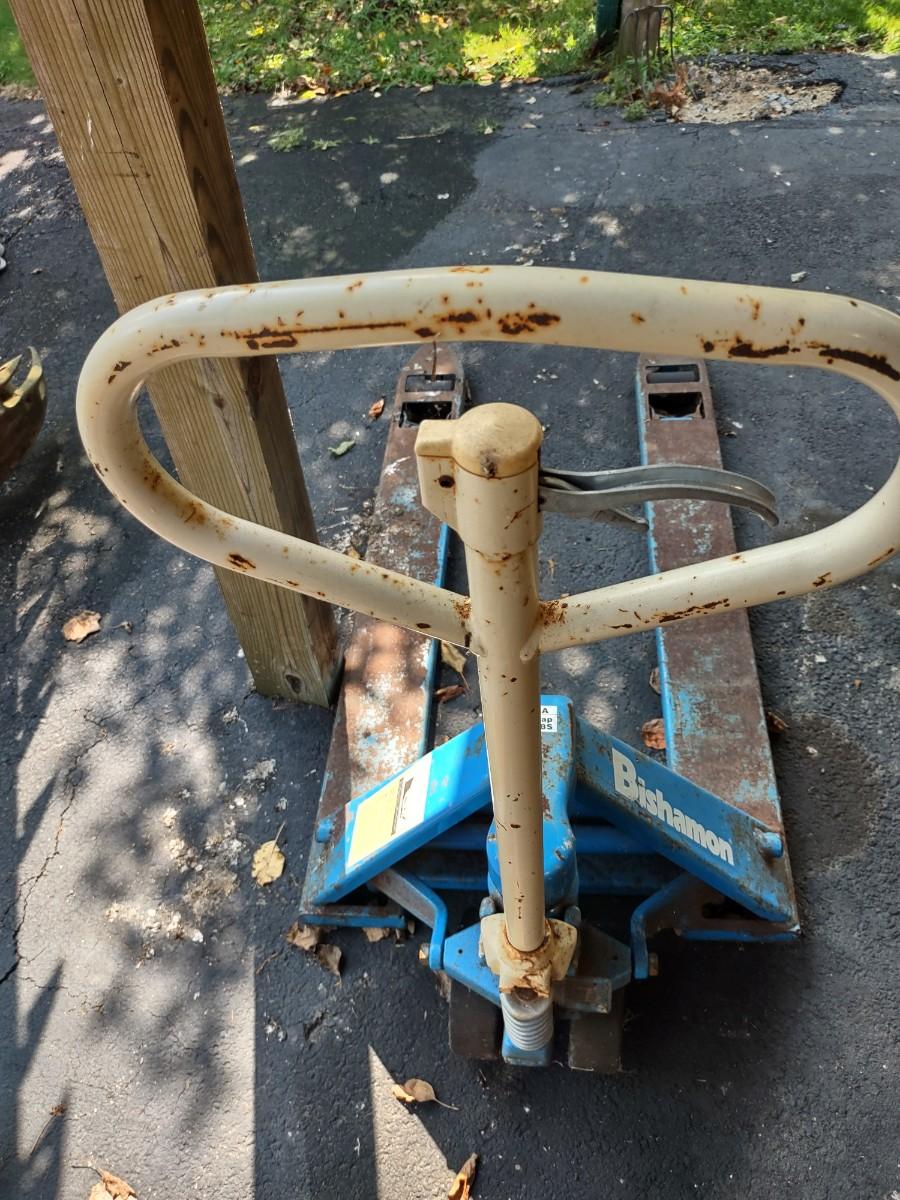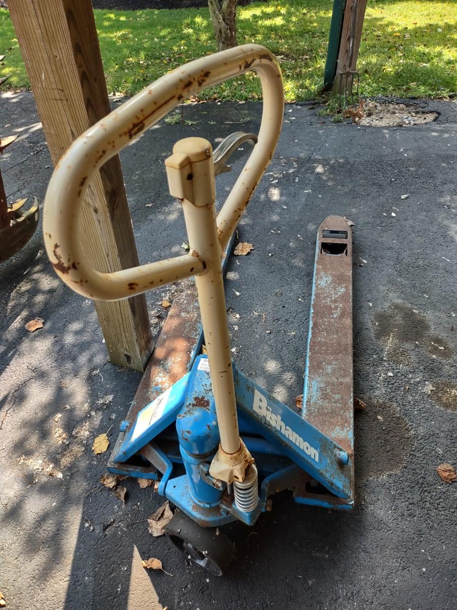 Bishamon Hydraulic Pallet Jack 5500Lbs Max Cap. Does Have Rust Spots. Please see all pictures as they are the best representation of the items. The pictures show condition, measurements if taken, and what is included in the lot. Due to the large amount that we photograph and the time frame, we are not always able to take measurements. All items unless noted, are pre-owned and have been used. If you purchased furniture, you must bring help. We do not allow one person to carry large furniture out on their own. Bring help, tools and a truck for the safety of our clients homes, and your personal safety. Company policy. Thank you.